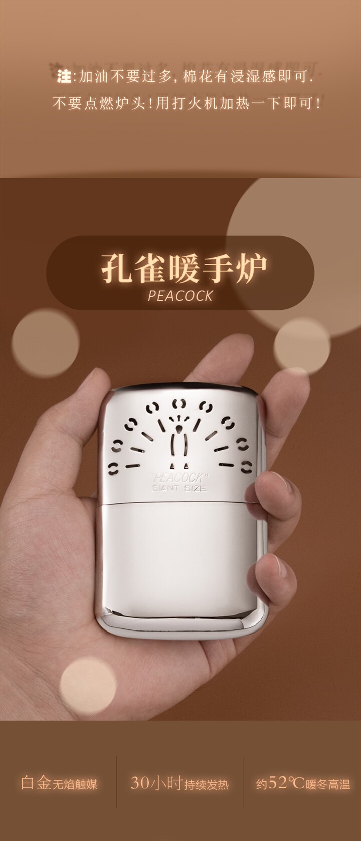 Платиновая медная удерживающая тепло грелка для рук, павлин, в корейском стиле, подарок на день рождения