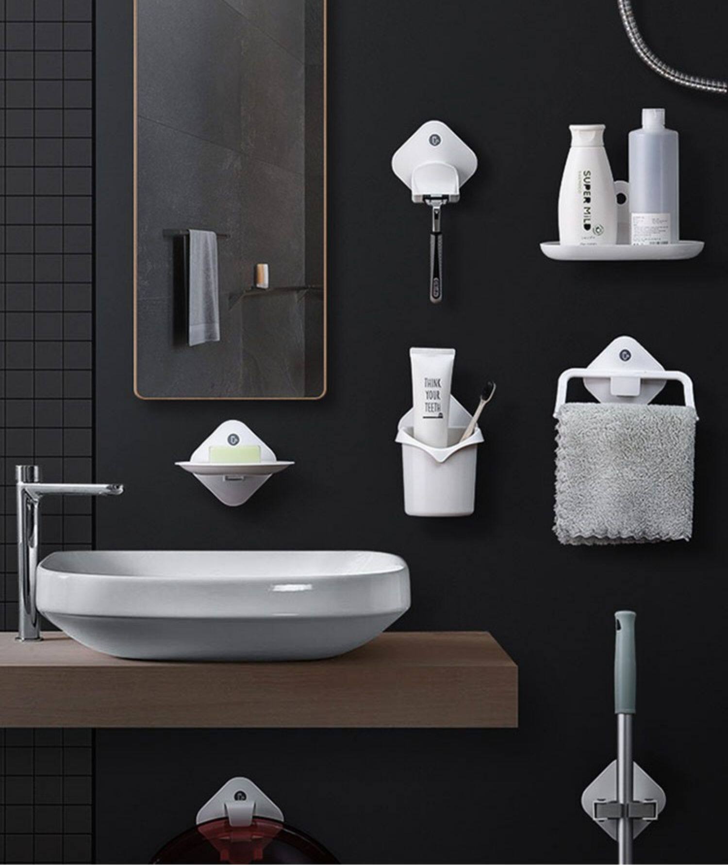 Ванная комната свободна от удара, повесив лицо полотенца на лице, общежитие, общежитие, туалетная туалетная креативная всасывающая чашка