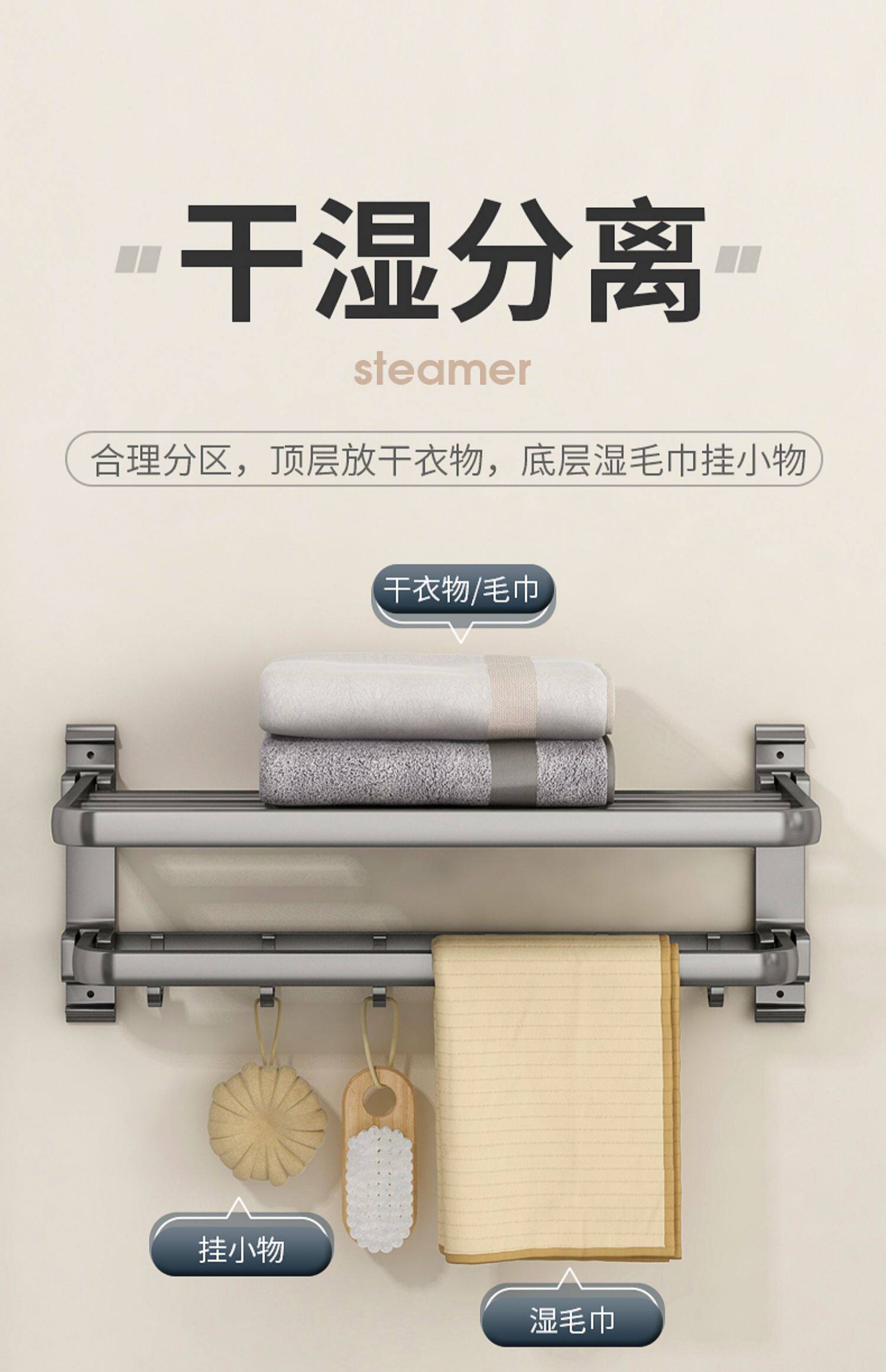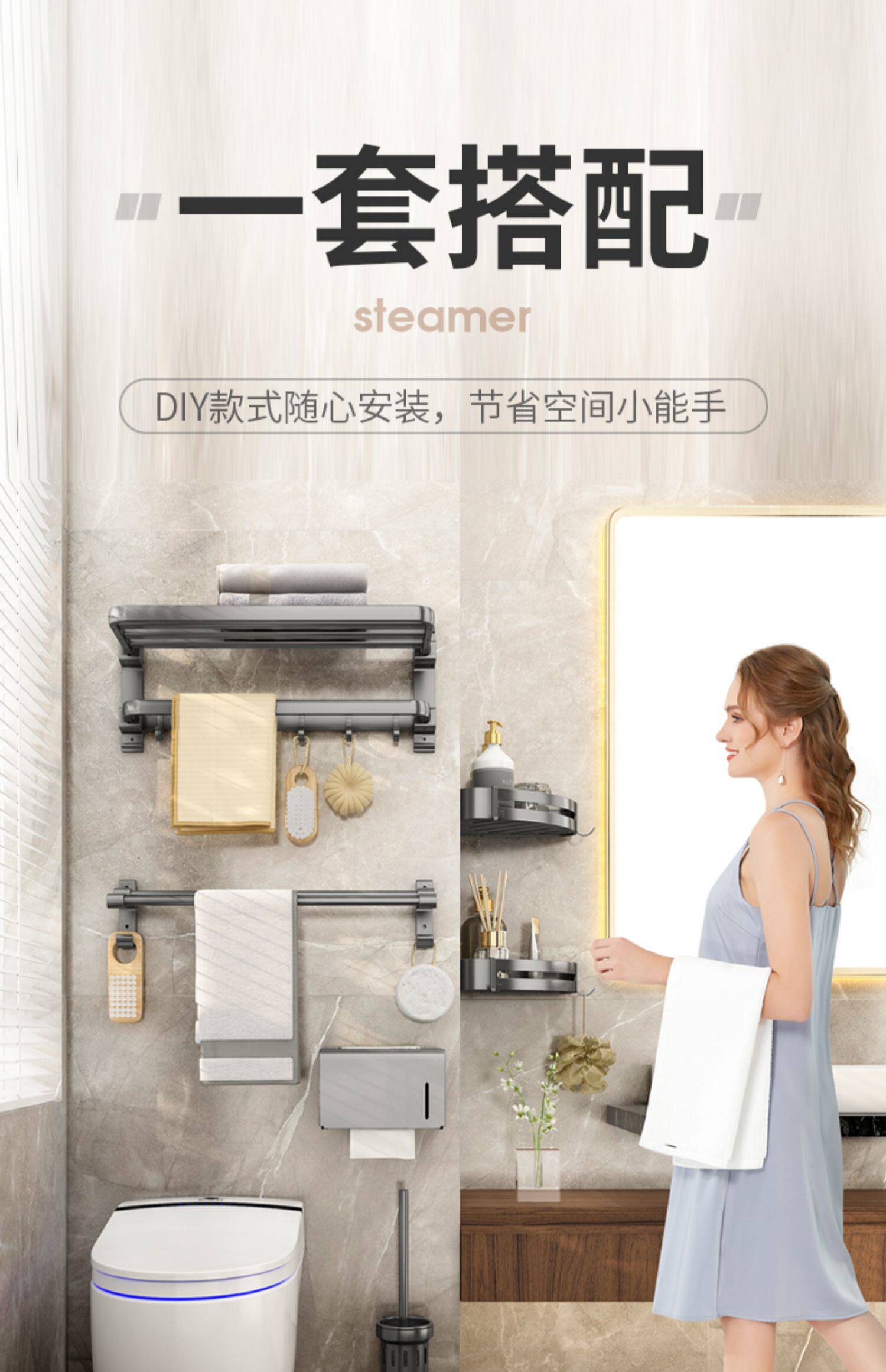 Глимер серый полотенце пространство пространство алюминиевые дома бесплатно ударить ванную комнату полотенца полки полки полки настен