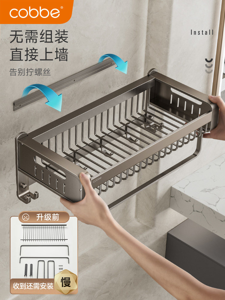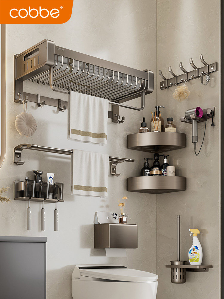 Кабея стойки для полотенец бесплатно ударить ванную комнату для ванной комнаты туалетное пространство алюминиевое аппаратное подвеска All -In -One Gun Grey
