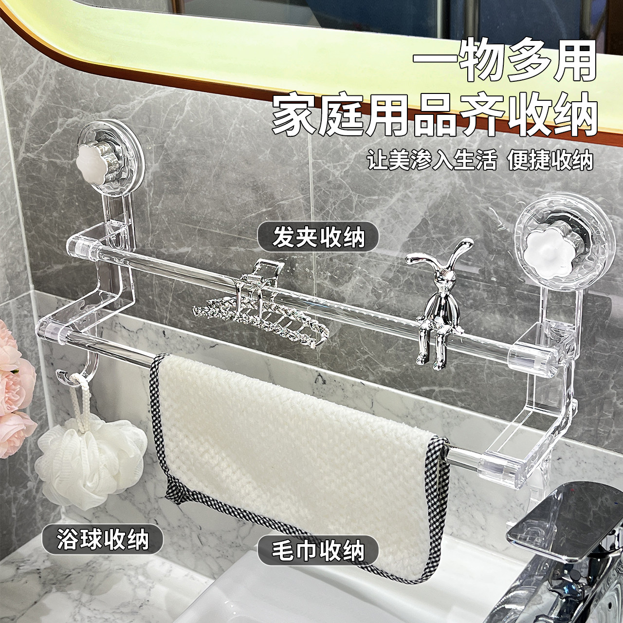 Вешалка для полотенец на присоске, прочная вешалка для полотенец без перфорации, настенная вешалка для ванной комнаты, телескопический крючок для вешалки для полотенец