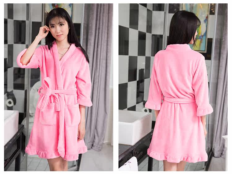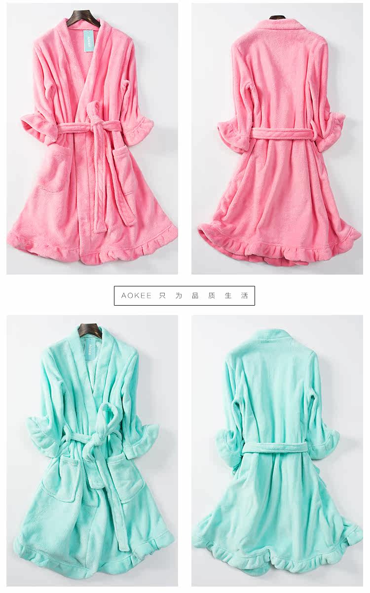 Банный халат, коралловая бархатная пижама, лонгслив, для влюбленных, увеличенная толщина