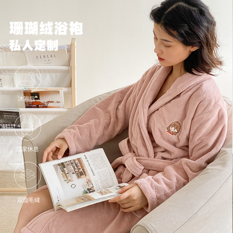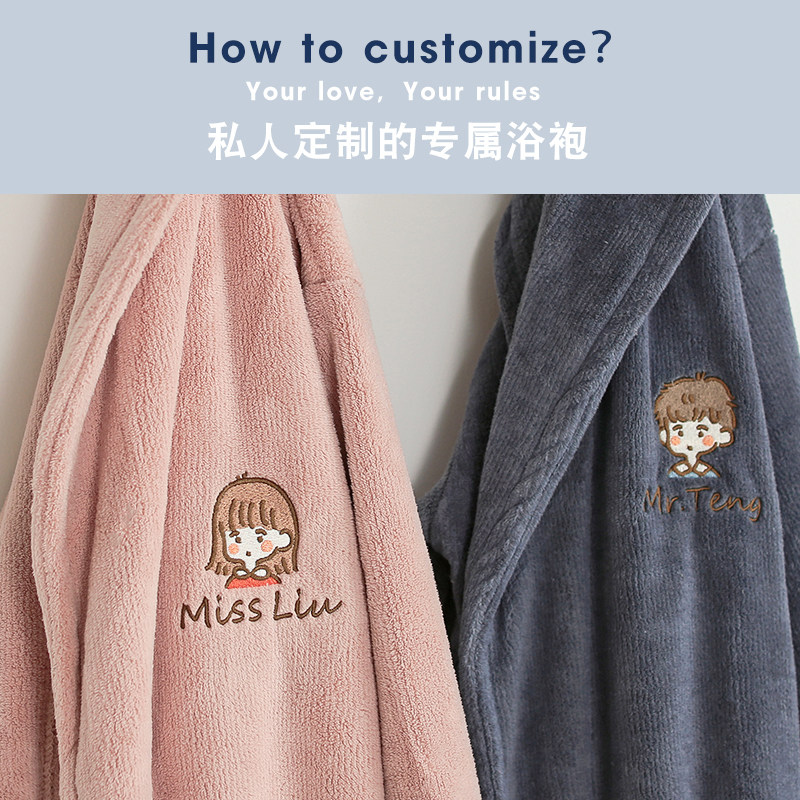 Банный халат на день Святого Валентина, коралловая бархатная пижама, подарок на день рождения, с вышивкой, для влюбленных