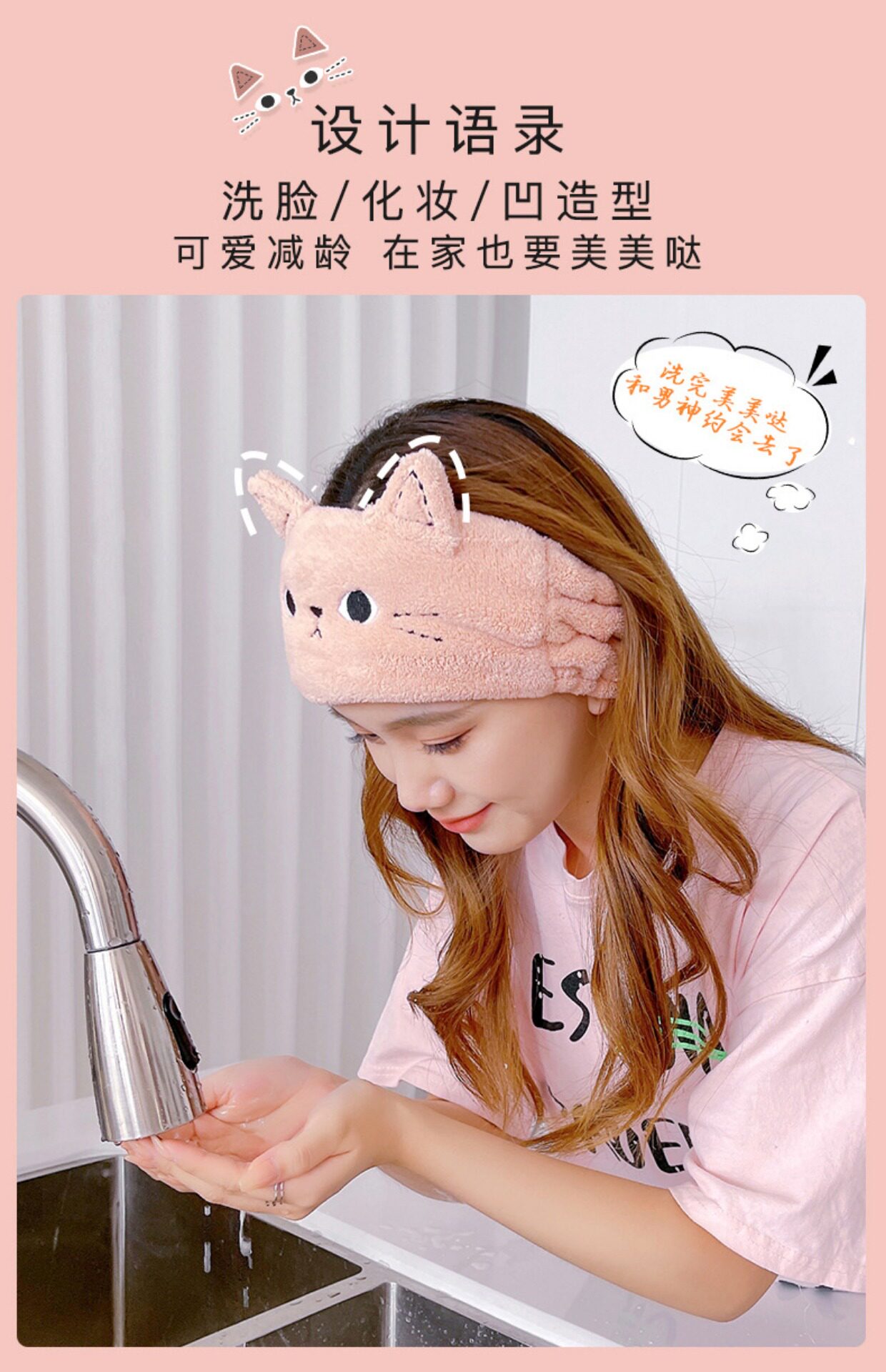 Повязка на голову, металлическая ткань, мультяшный милый эластичный аксессуар для волос для умывания, трехмерный ободок