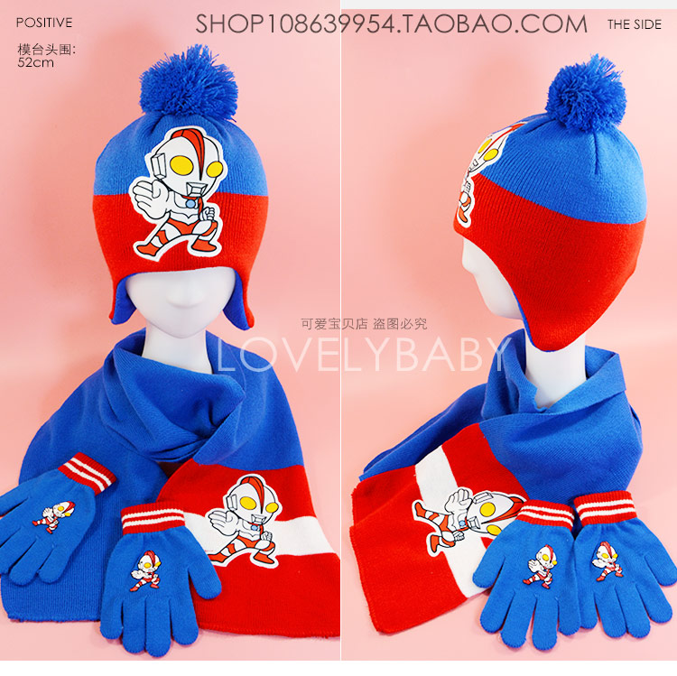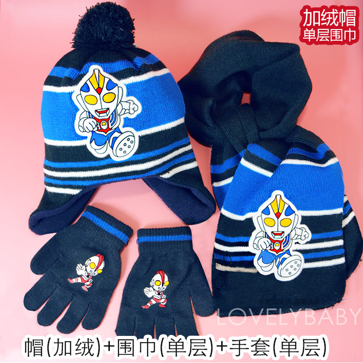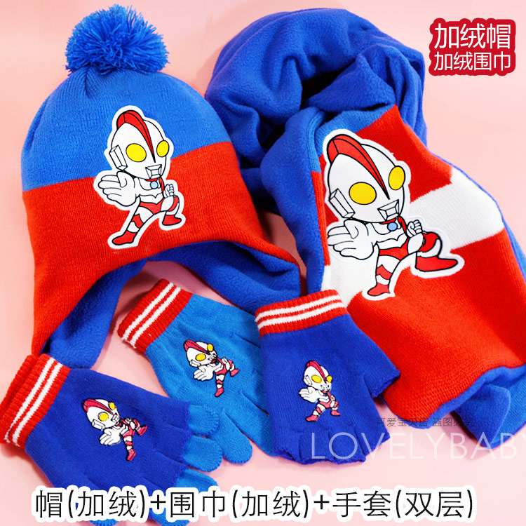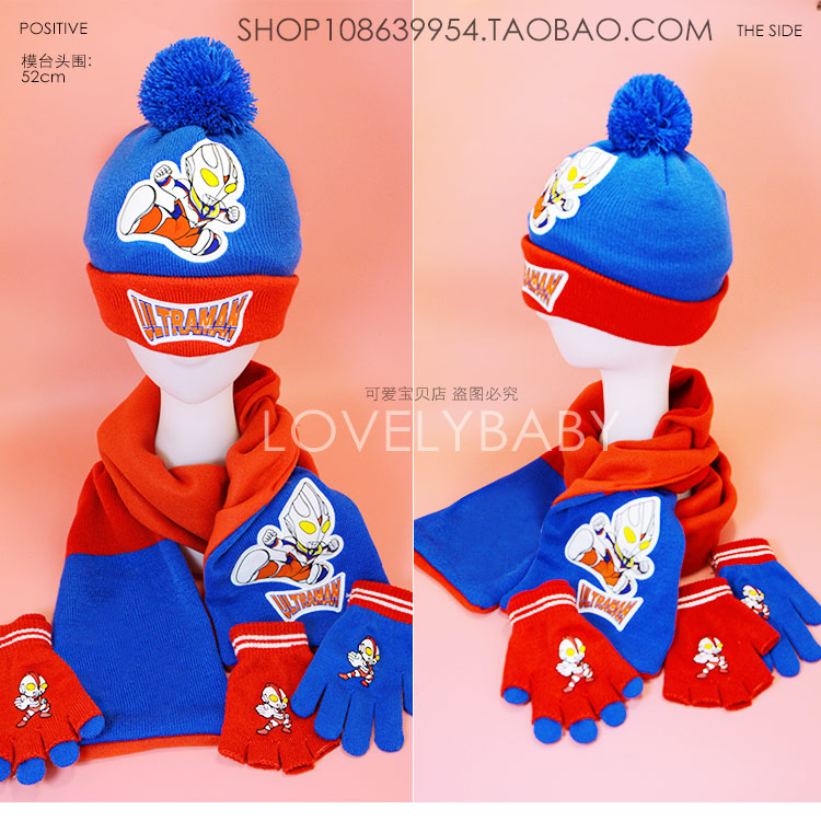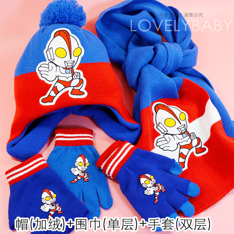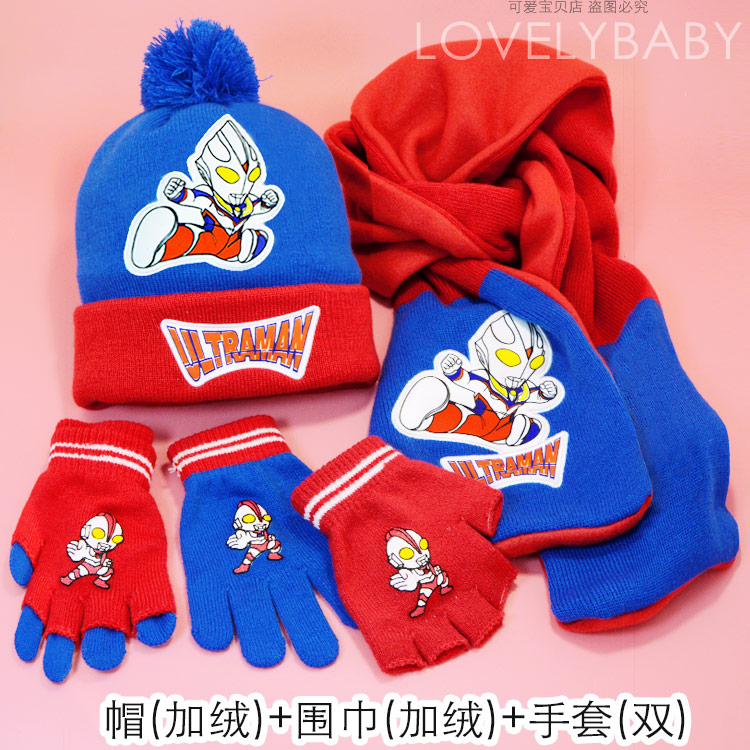 Ultra, Ультрамен Тига, шапка, шарф, перчатки, детский комплект, Человек-паук, бэтмен, 3 предмета