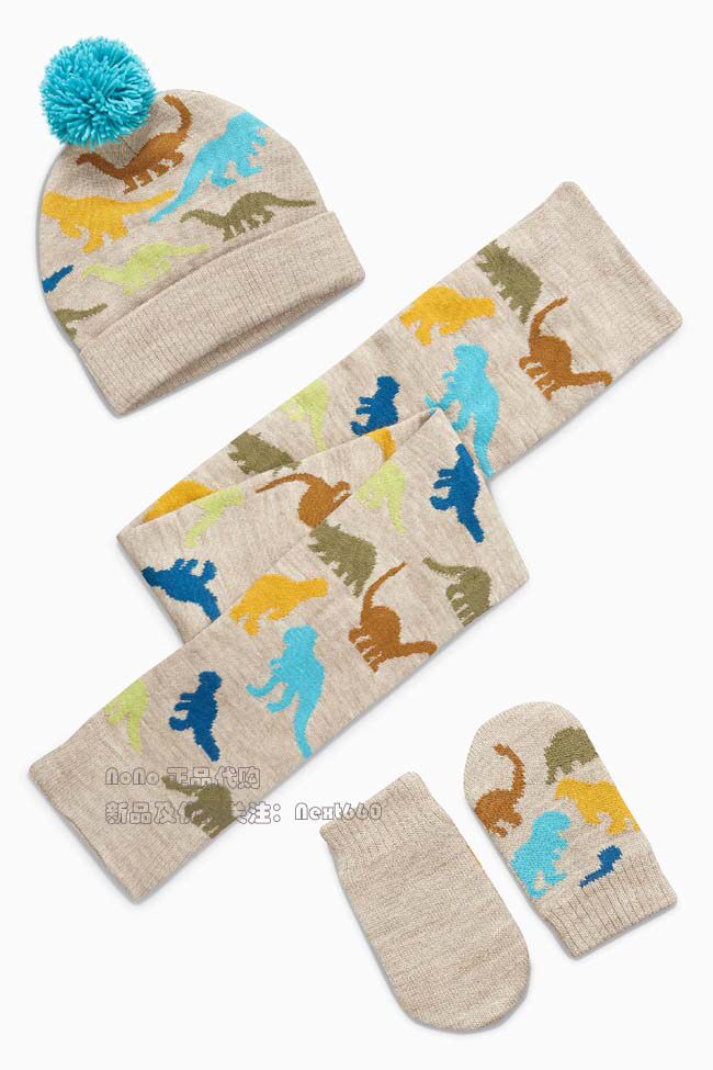 Next, перчатки для мальчиков, шарф, комплект, синий динозавр, (в наличии на складе), Великобритания, дорожная версия