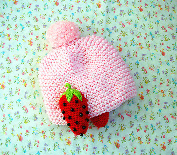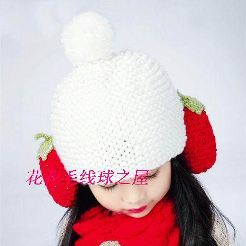 Плетеная шерстяная детская вязаная шапка, клубника с капюшоном, DIY