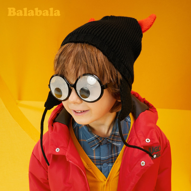 巴拉巴拉 Зимняя милая детская удерживающая тепло трикотажная шерстяная шапка для мальчиков