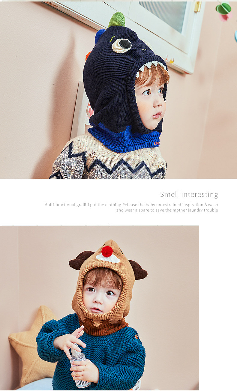 Детская шапка, шарф, детский демисезонный шерстяной динозавр для мальчиков