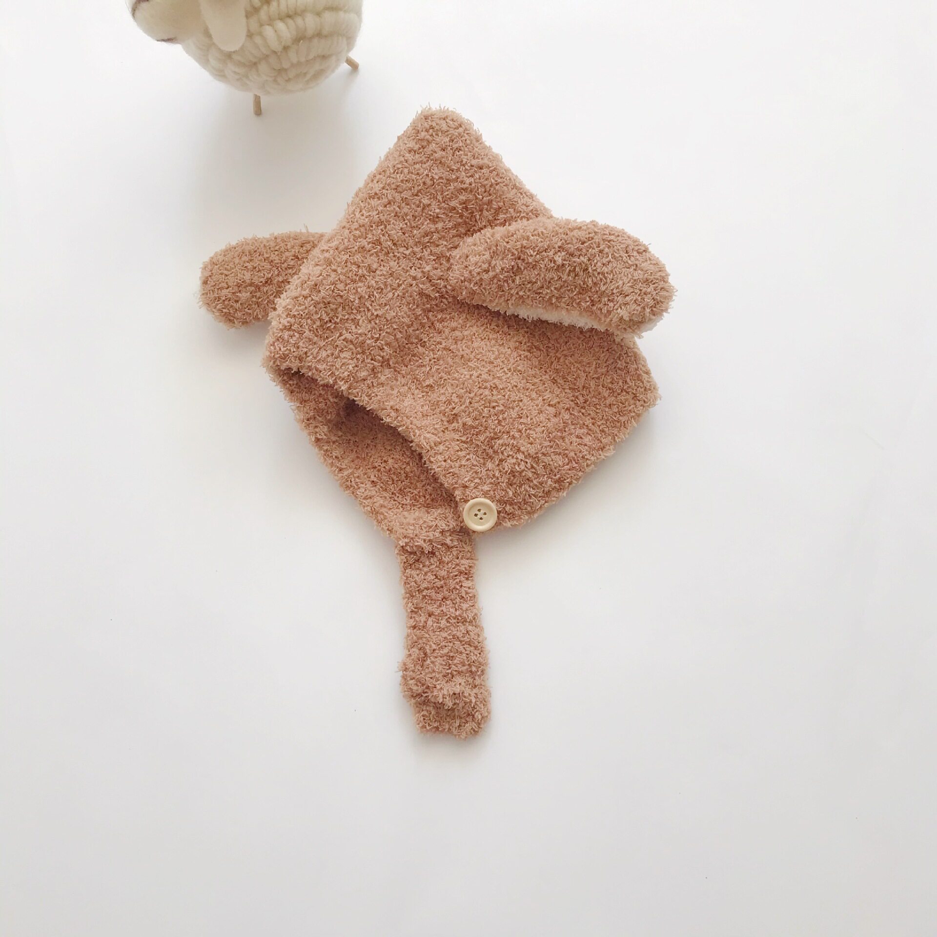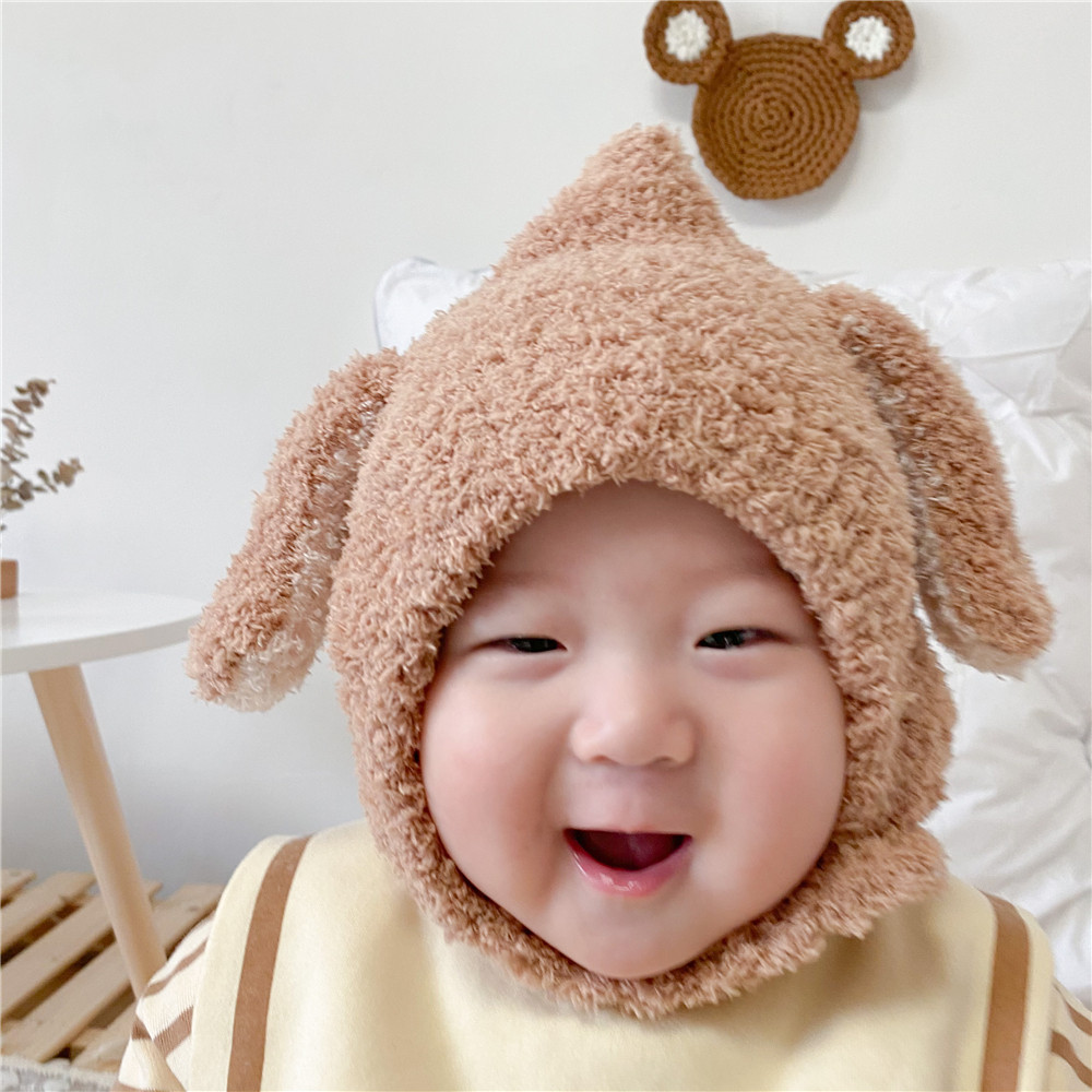 Детская шерстяная демисезонная удерживающая тепло бархатная мультяшная вязаная шапка с капюшоном