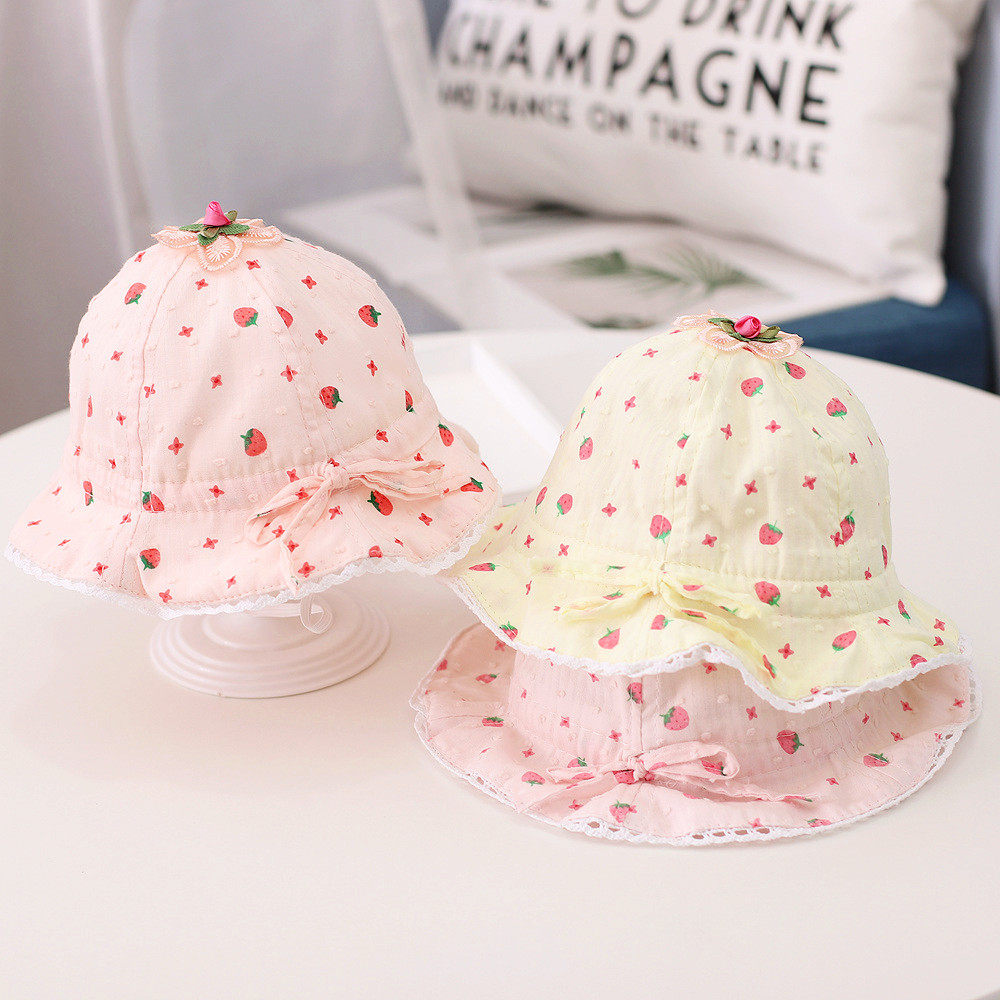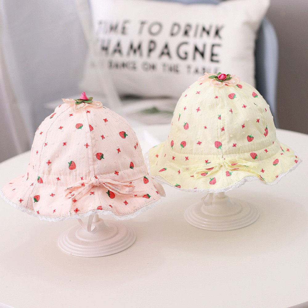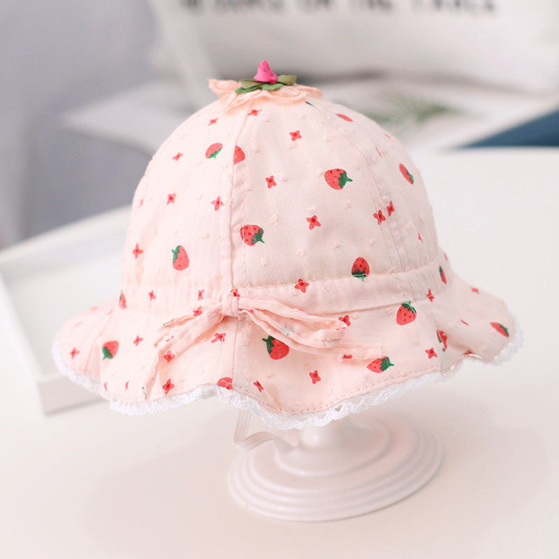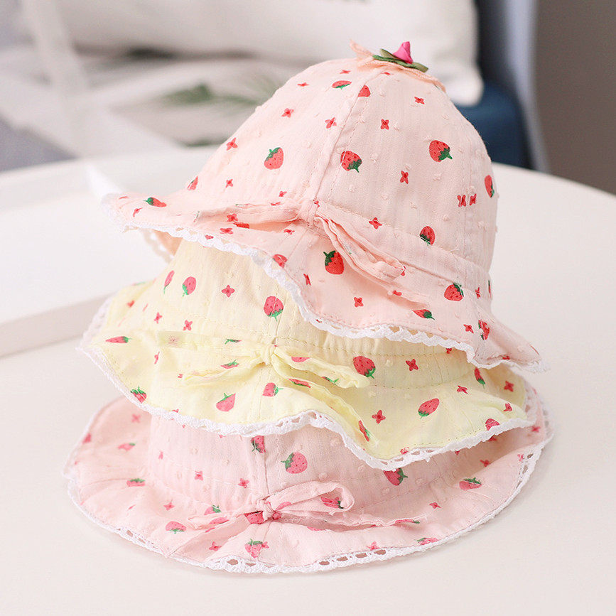 Детская летняя шапка, милая хлопковая тонкая клубника для девочек для новорожденных для раннего возраста, защита от солнца