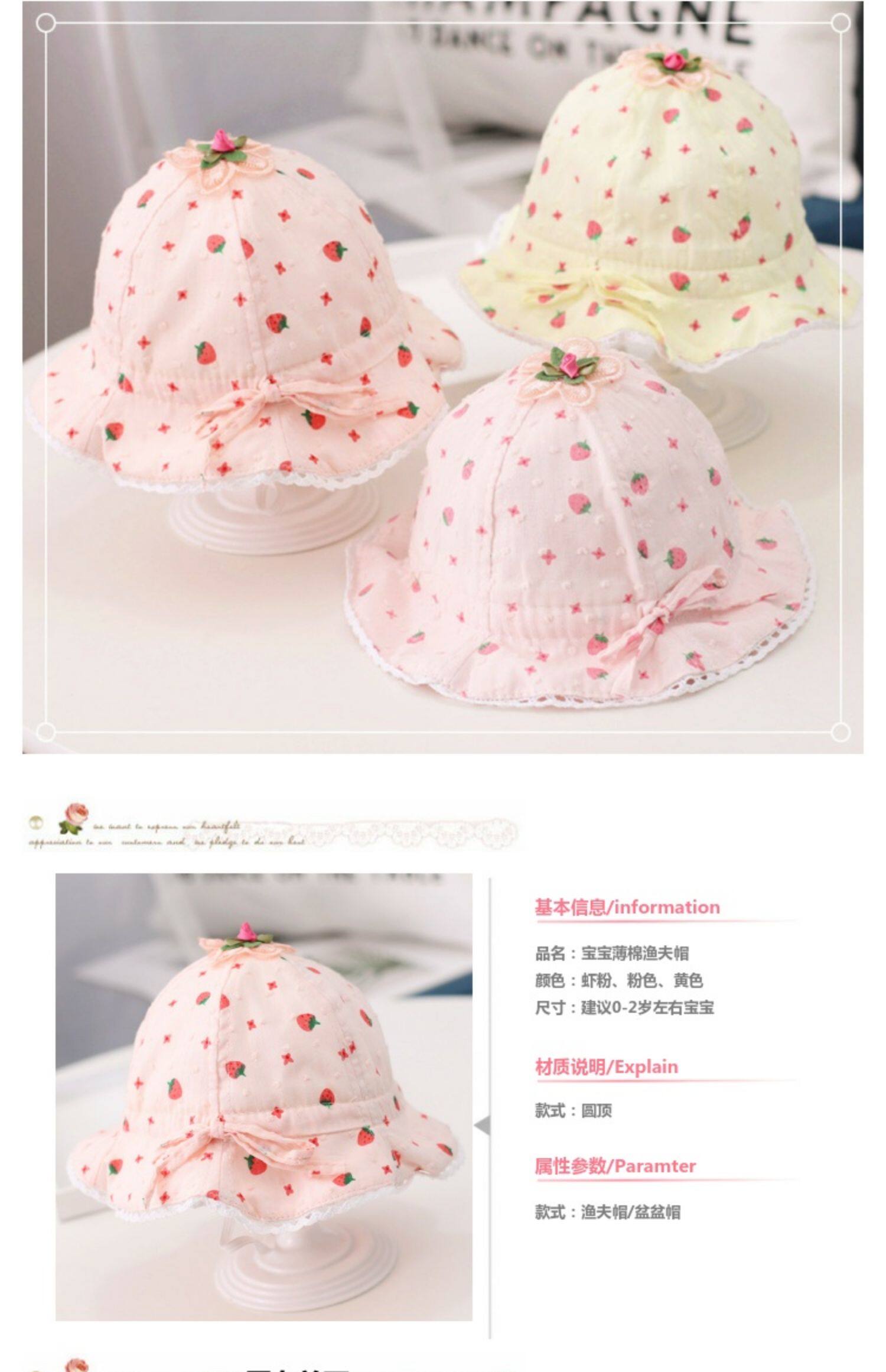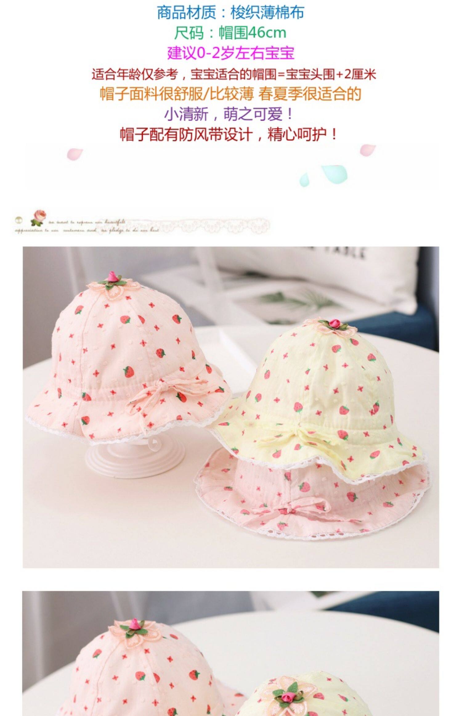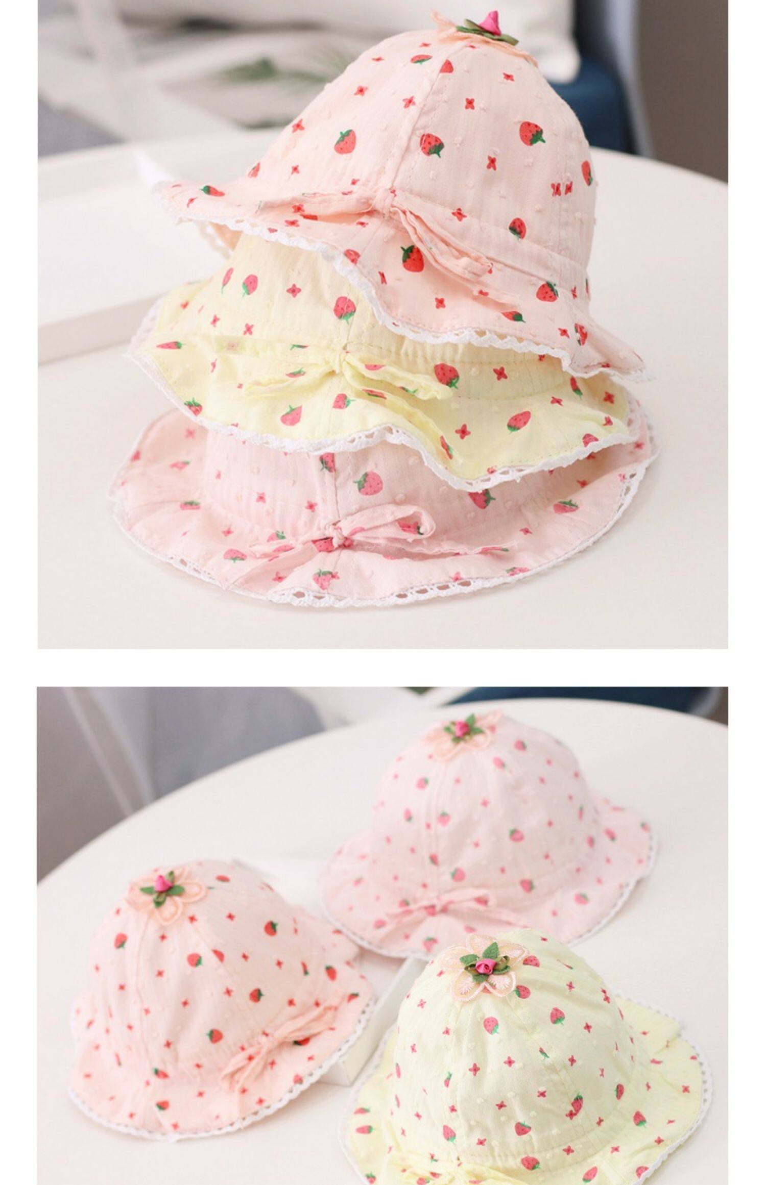 Детская летняя шапка, милая хлопковая тонкая клубника для девочек для новорожденных для раннего возраста, защита от солнца