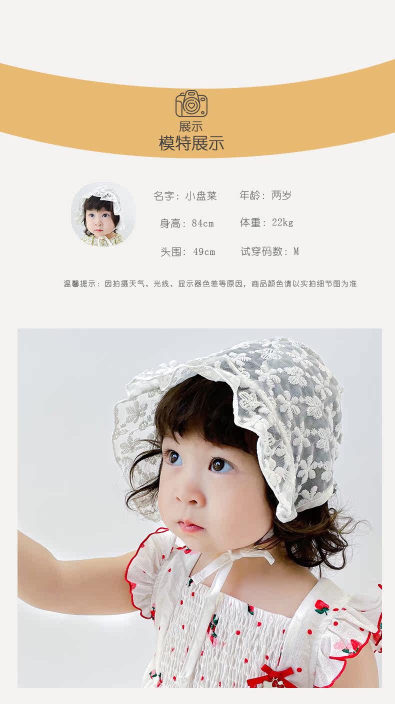 Детская летняя тонкая кружевная шапка для новорожденных