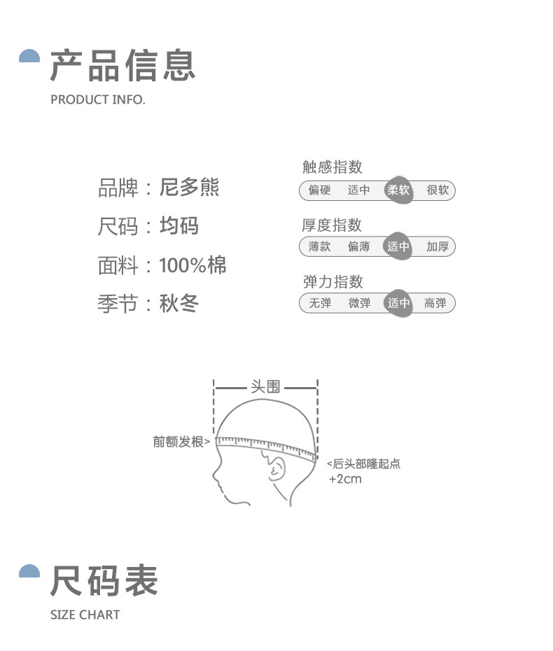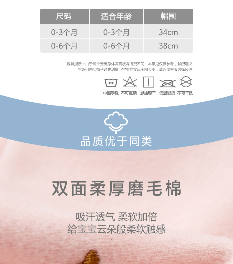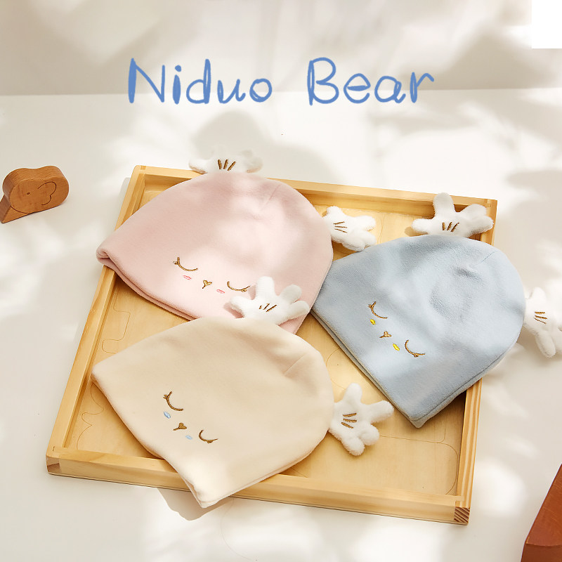 尼多熊 Детская осенняя милая хлопковая шапка для раннего возраста подходит для мужчин и женщин для новорожденных с капюшоном