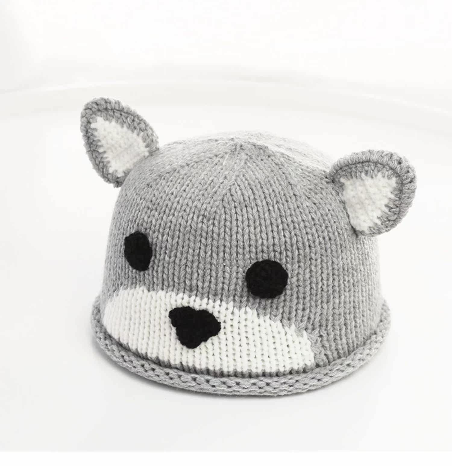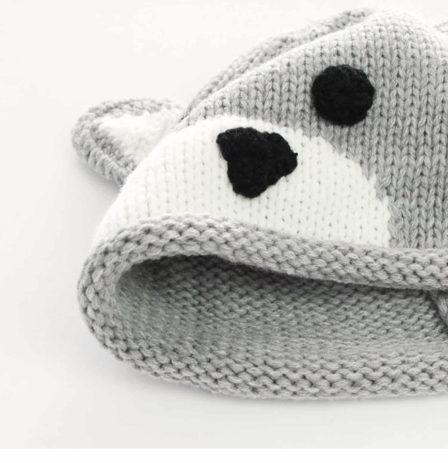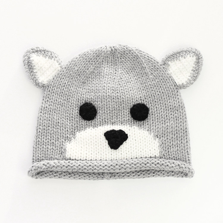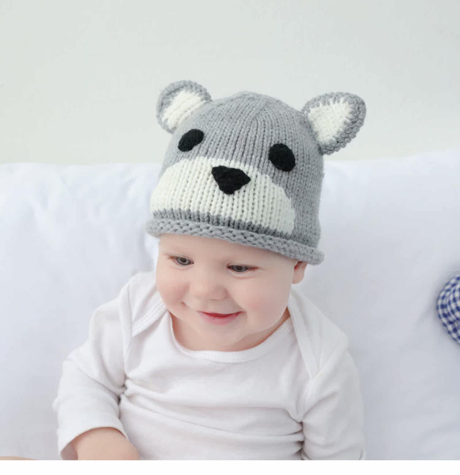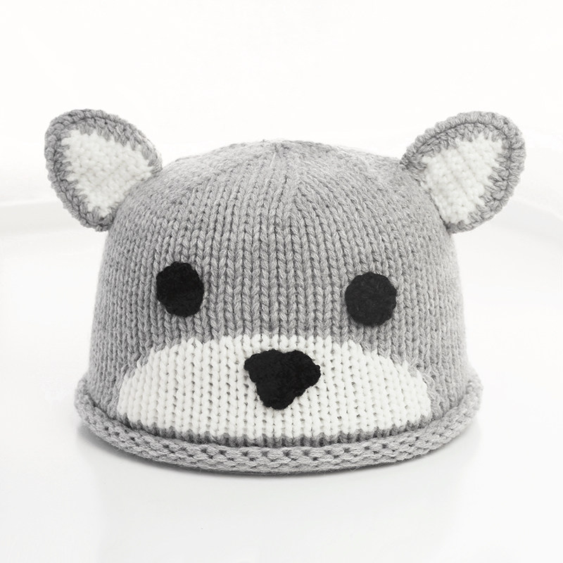 Детская шерстяная милая удерживающая тепло демисезонная вязаная шапка для раннего возраста, с медвежатами