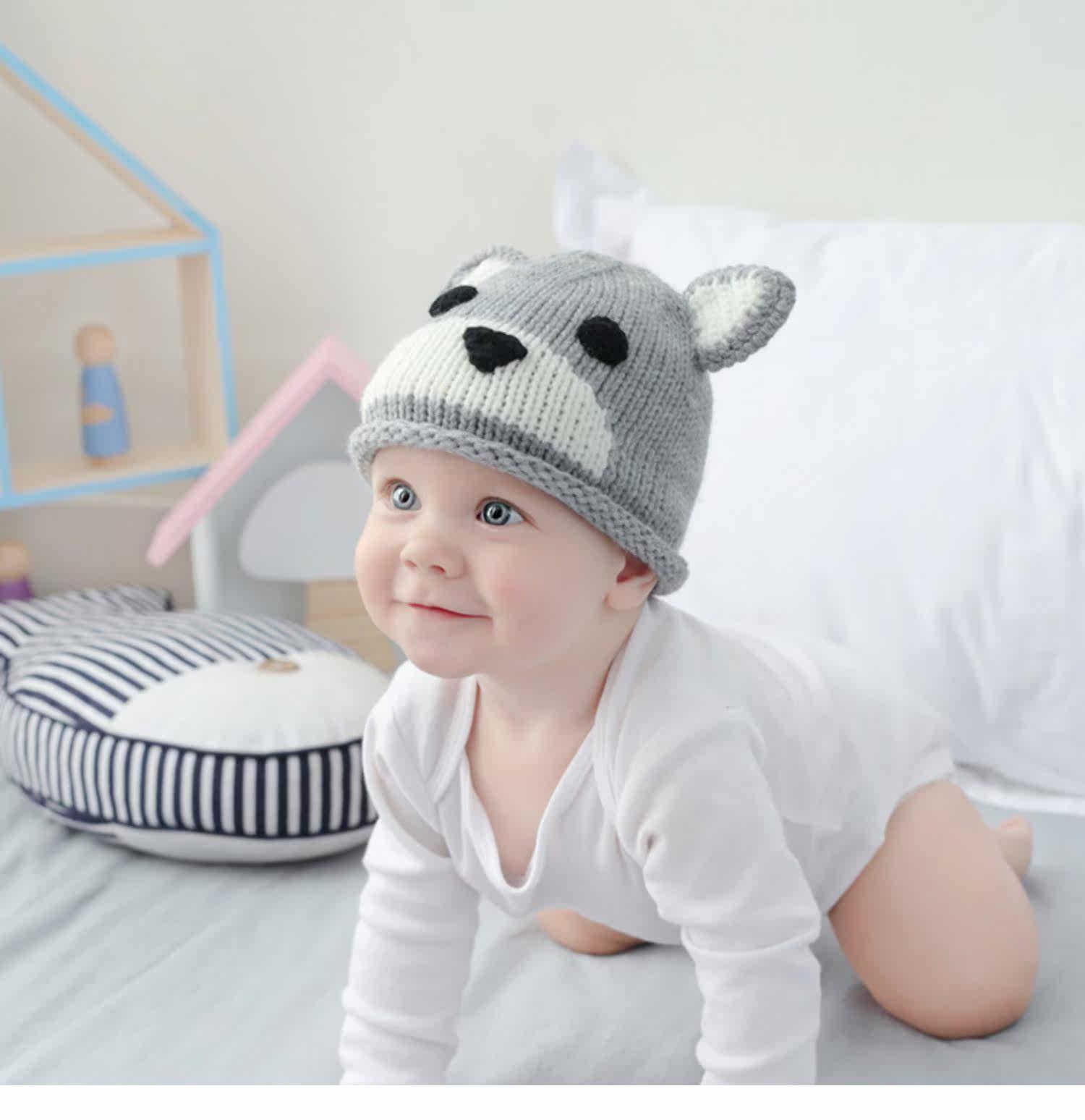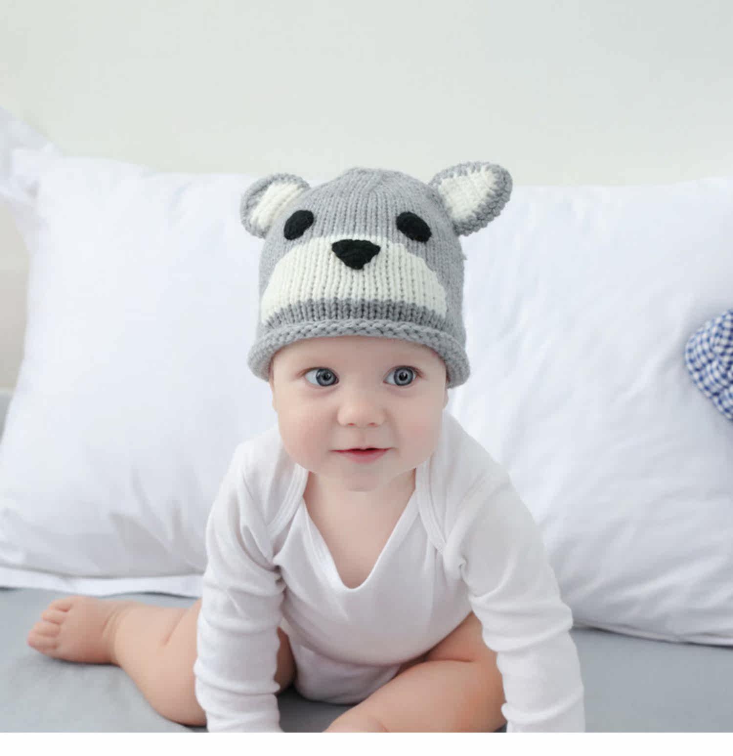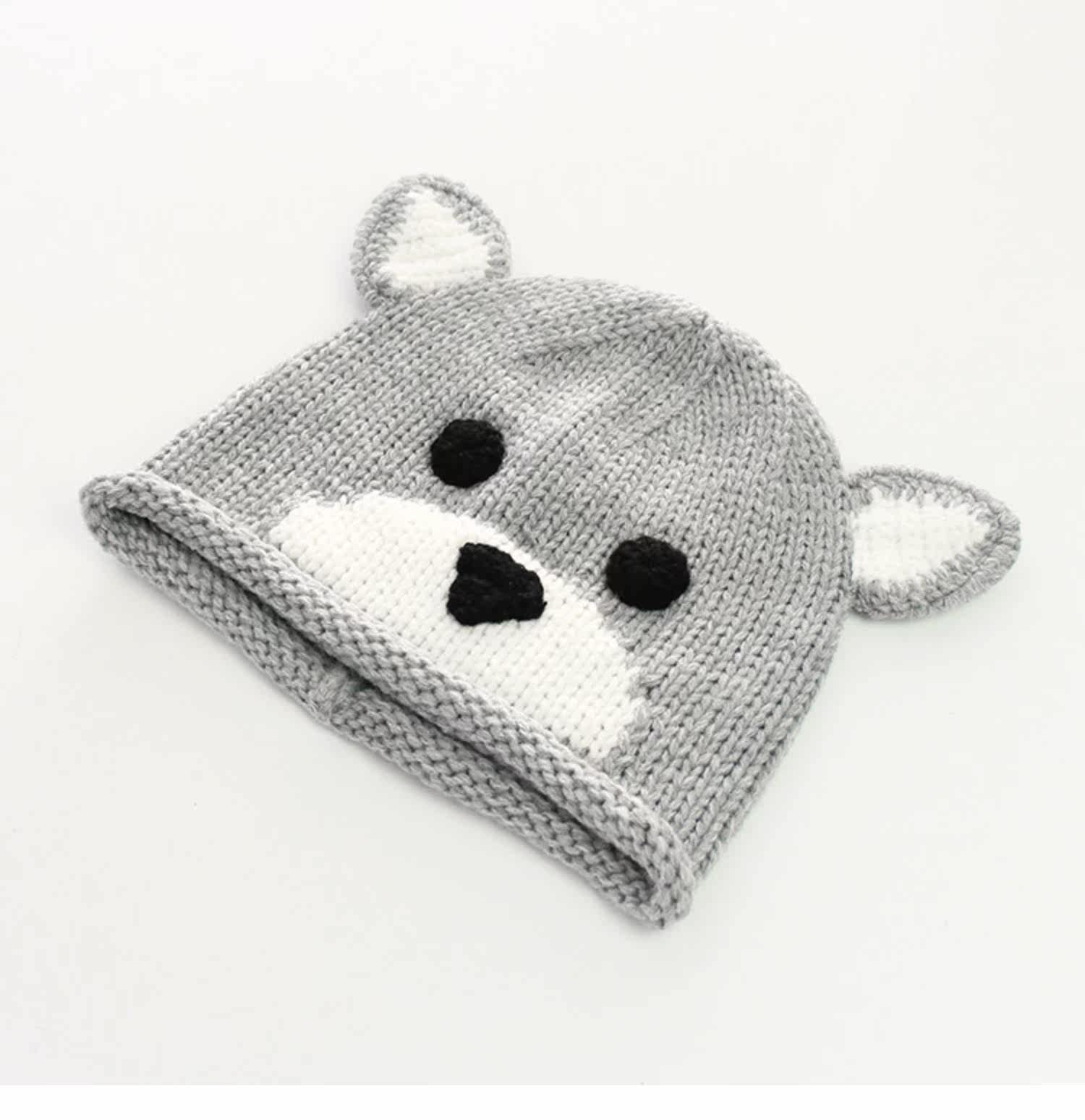Детская шерстяная милая удерживающая тепло демисезонная вязаная шапка для раннего возраста, с медвежатами