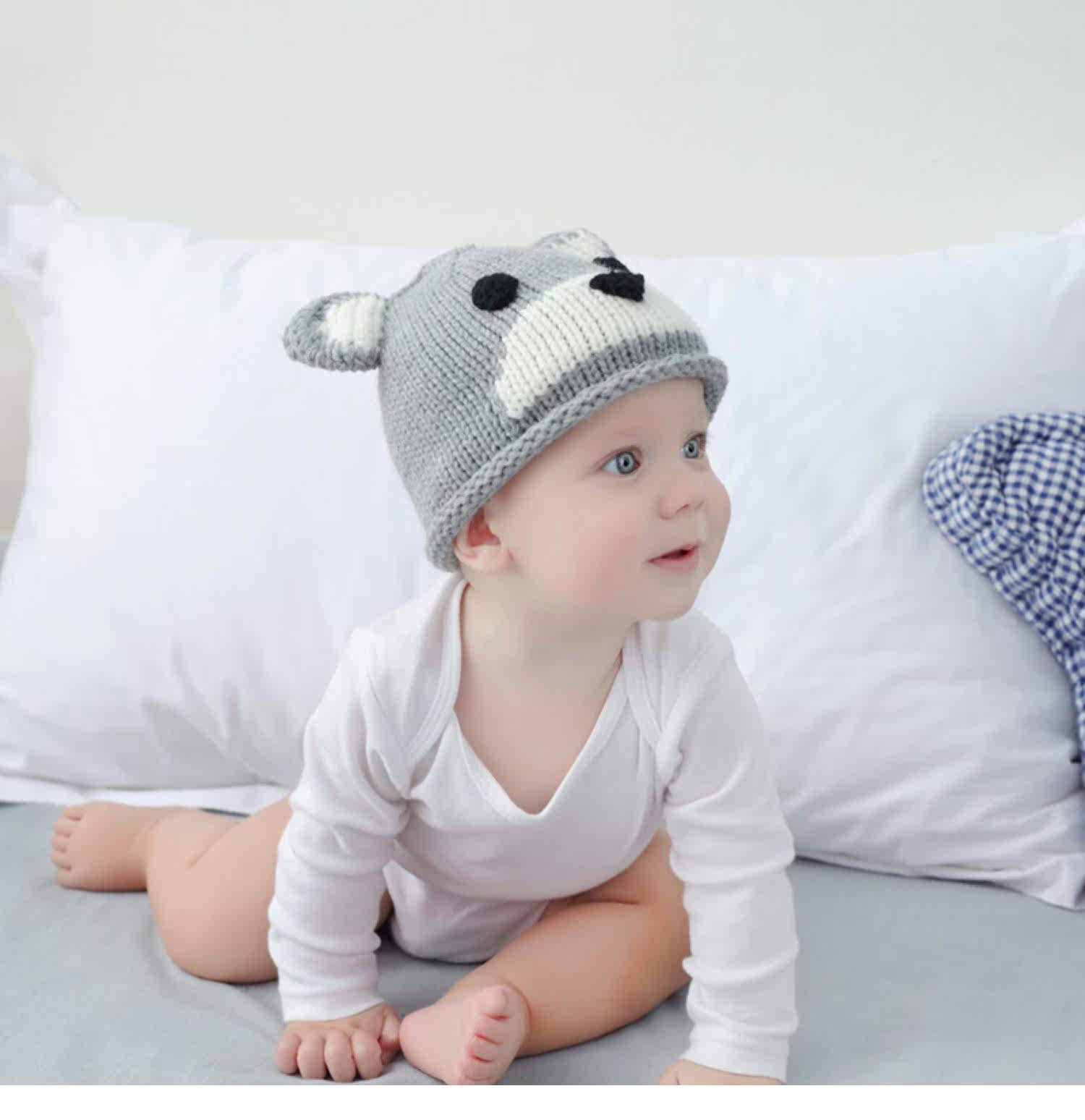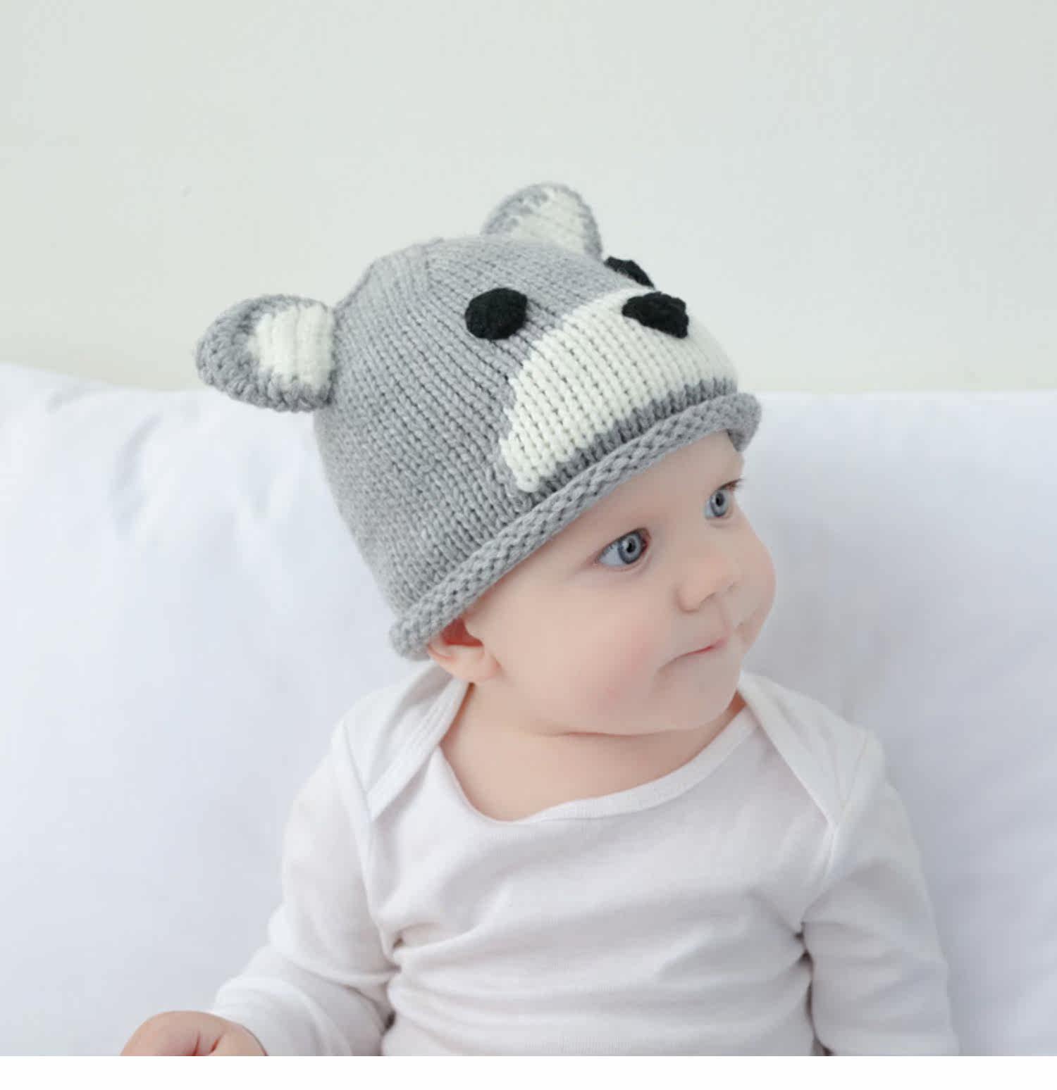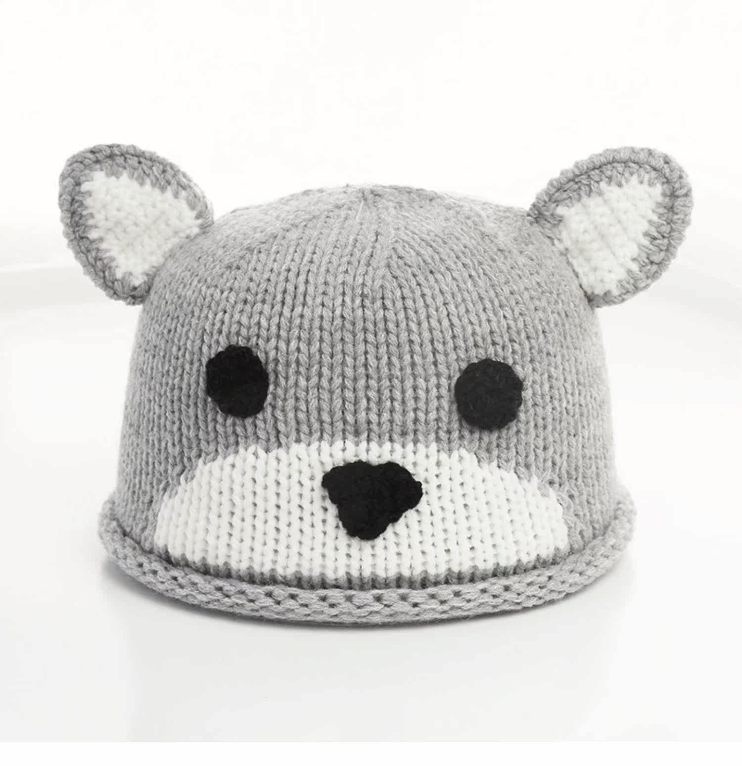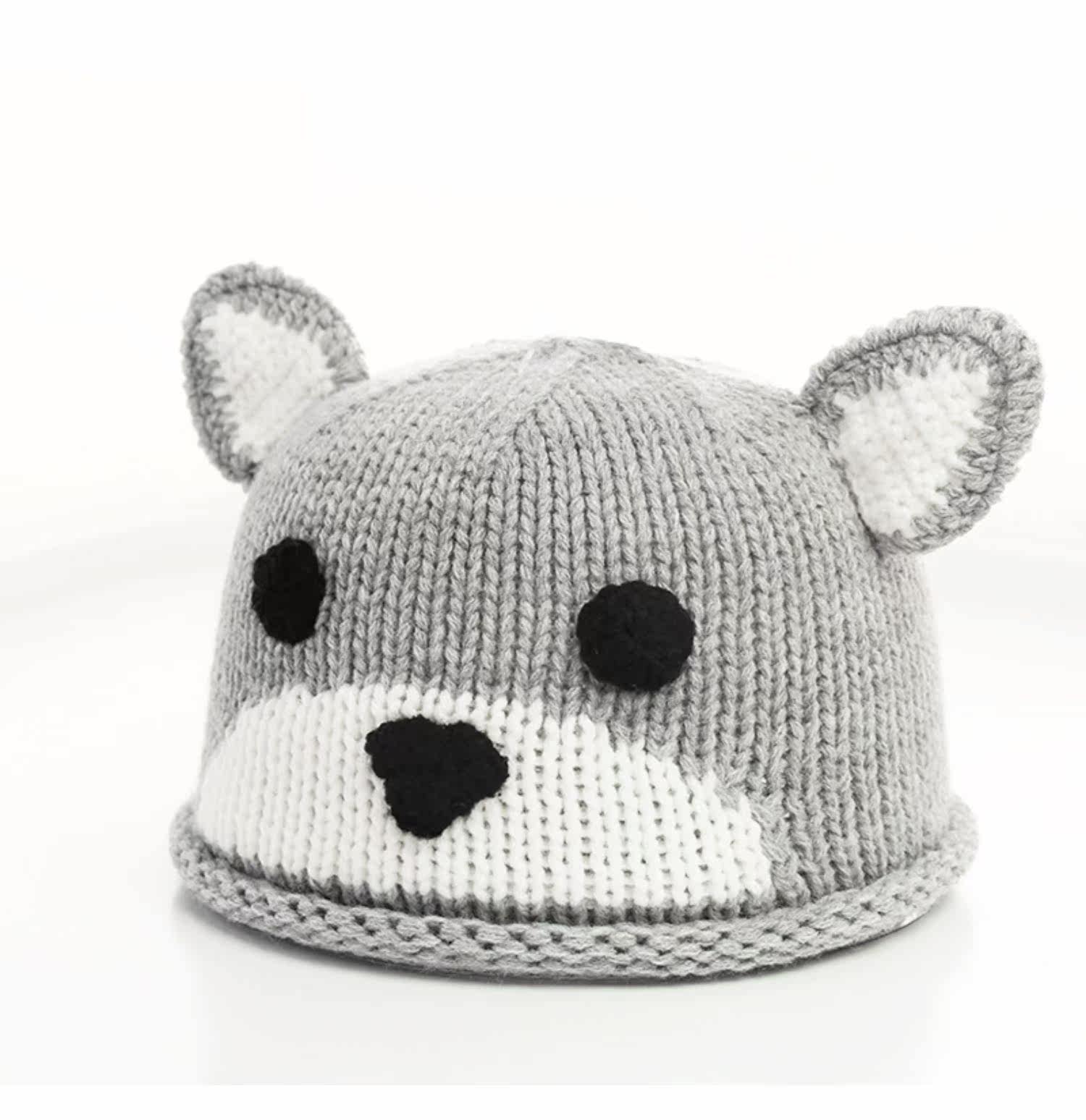 Детская шерстяная милая удерживающая тепло демисезонная вязаная шапка для раннего возраста, с медвежатами