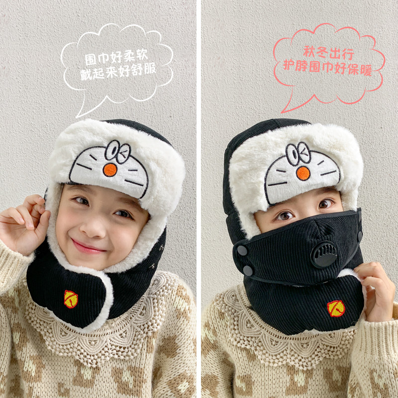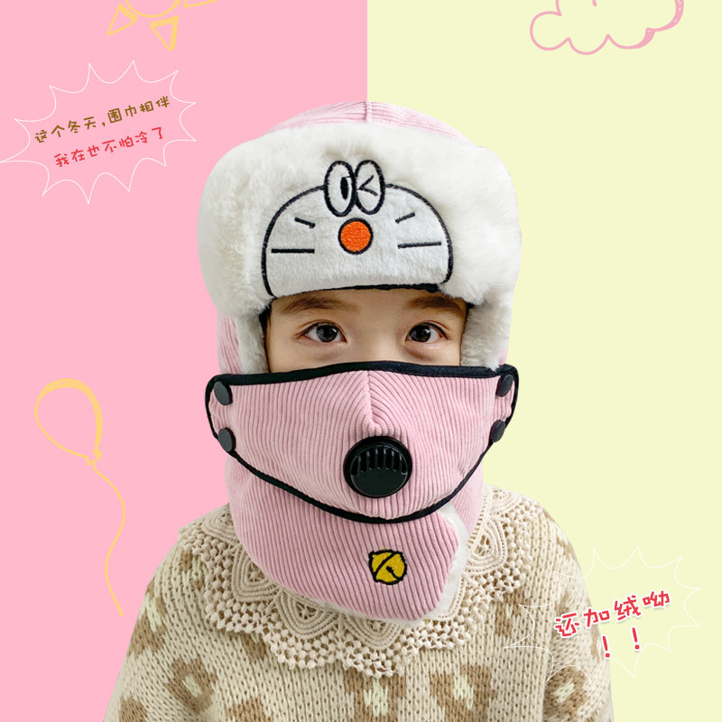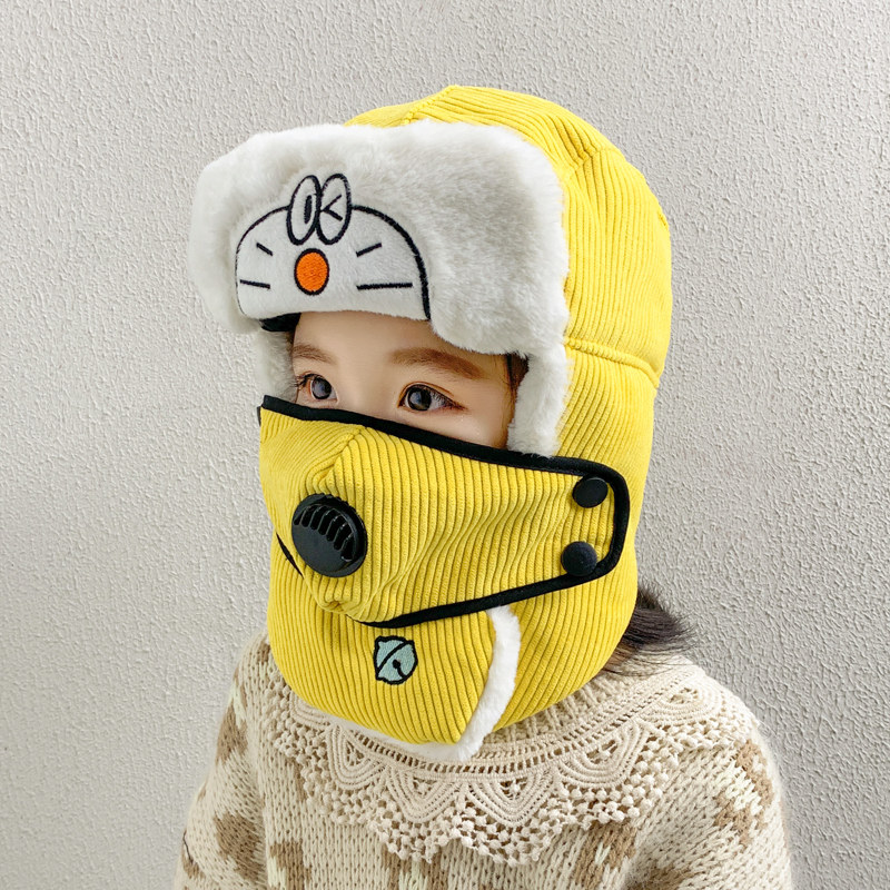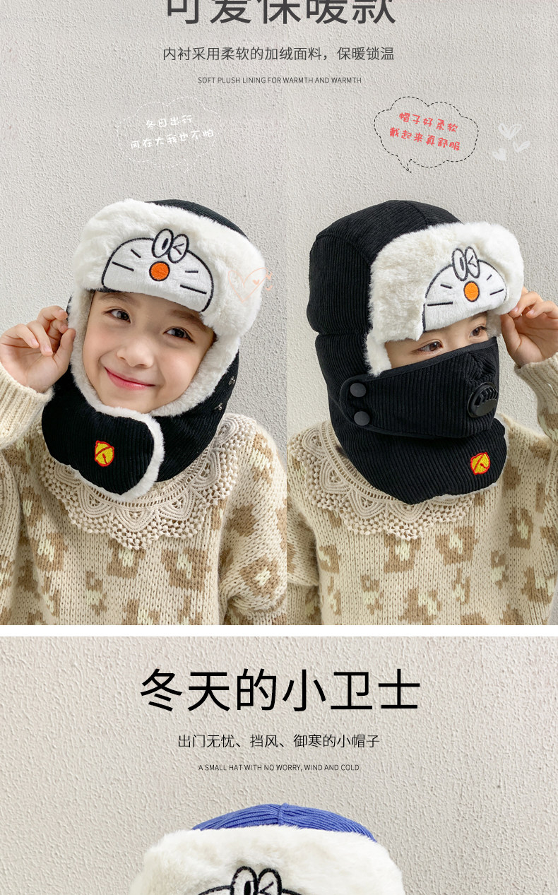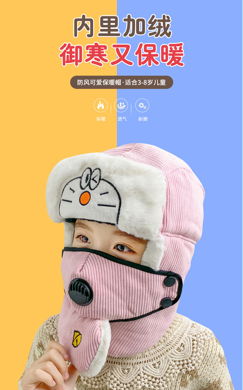 Мультяшная маска, детская демисезонная утепленная шапка