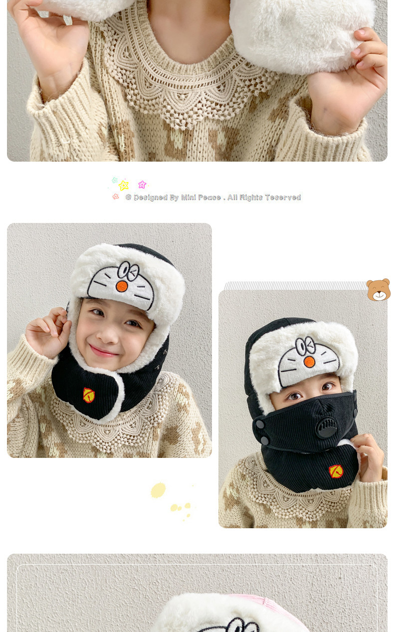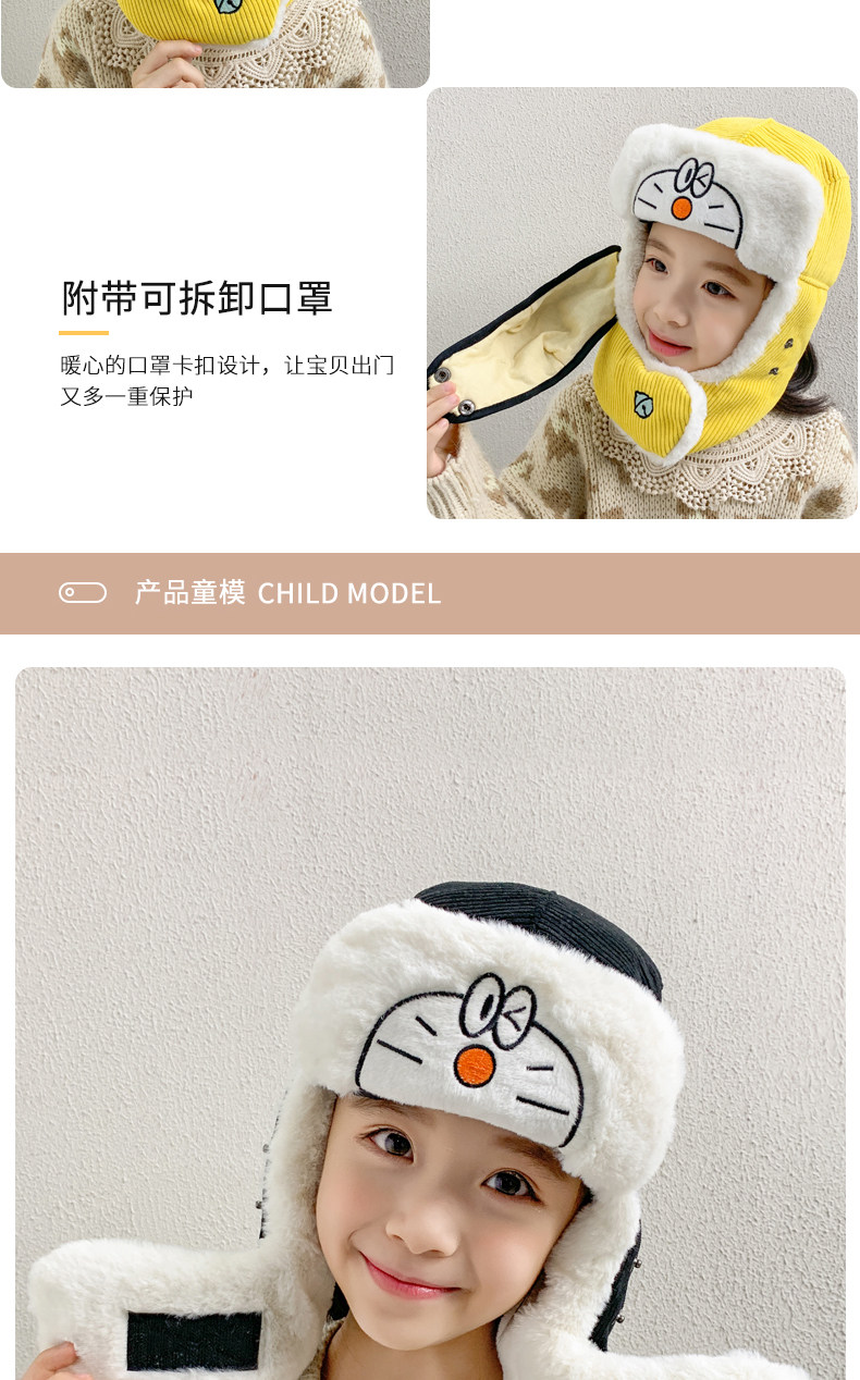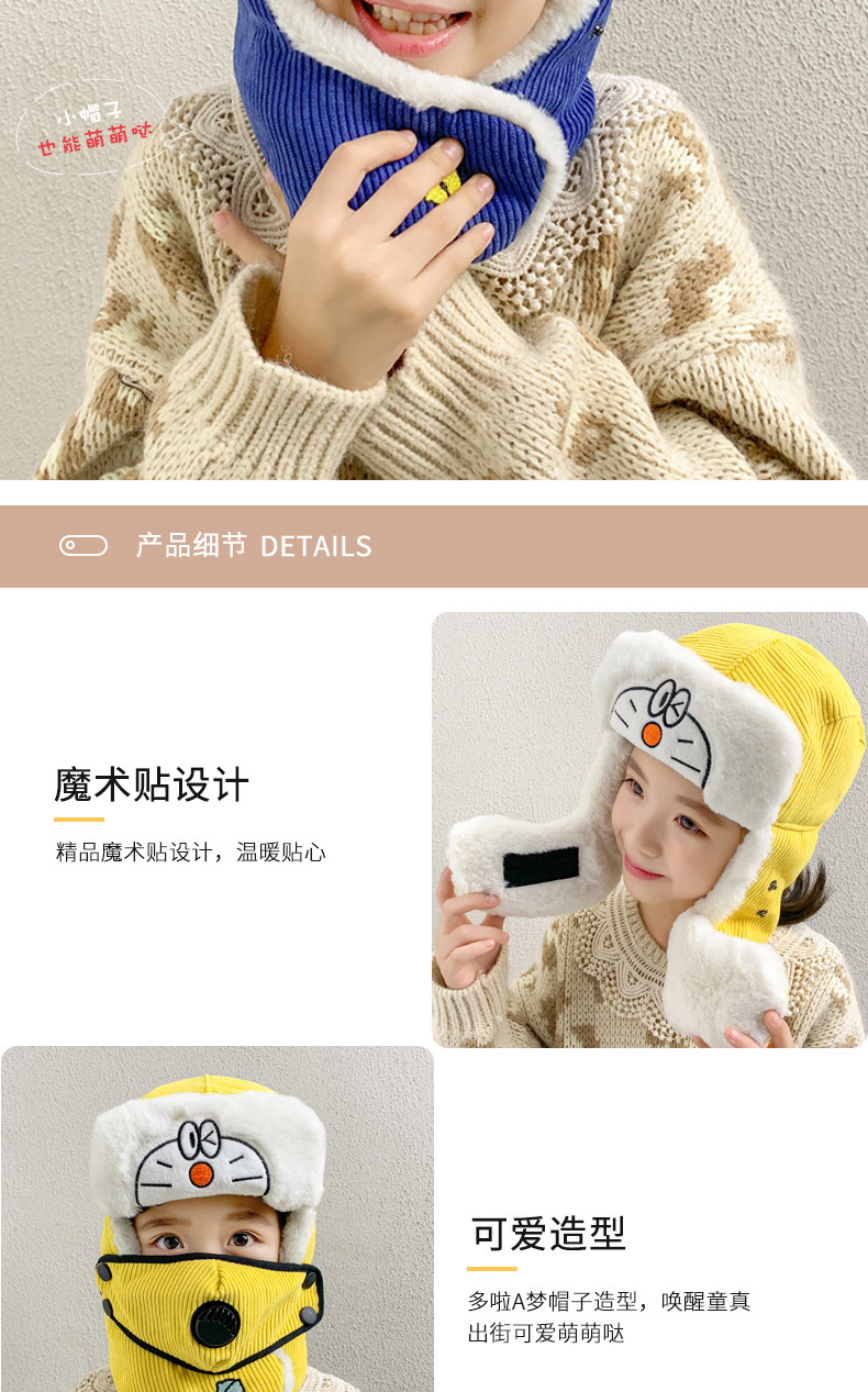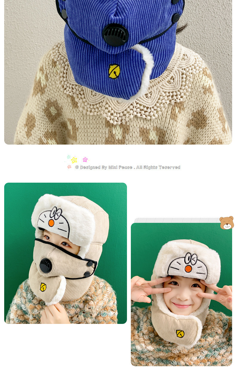 Мультяшная маска, детская демисезонная утепленная шапка