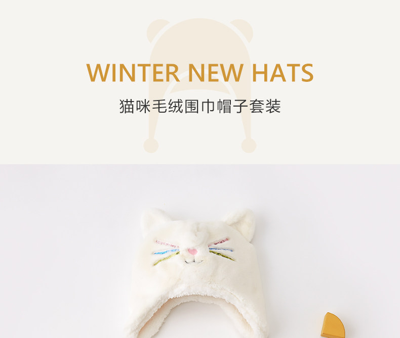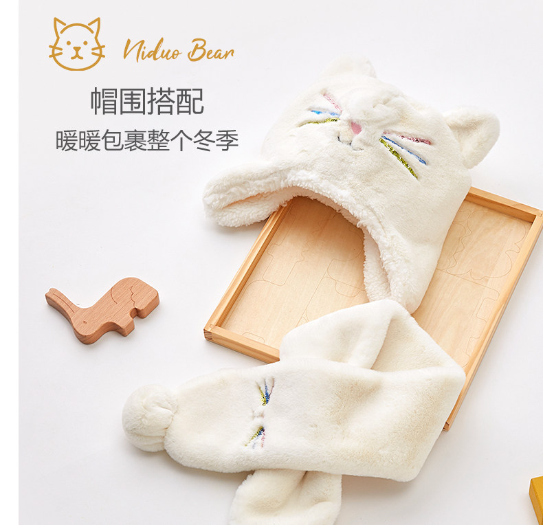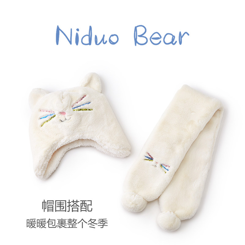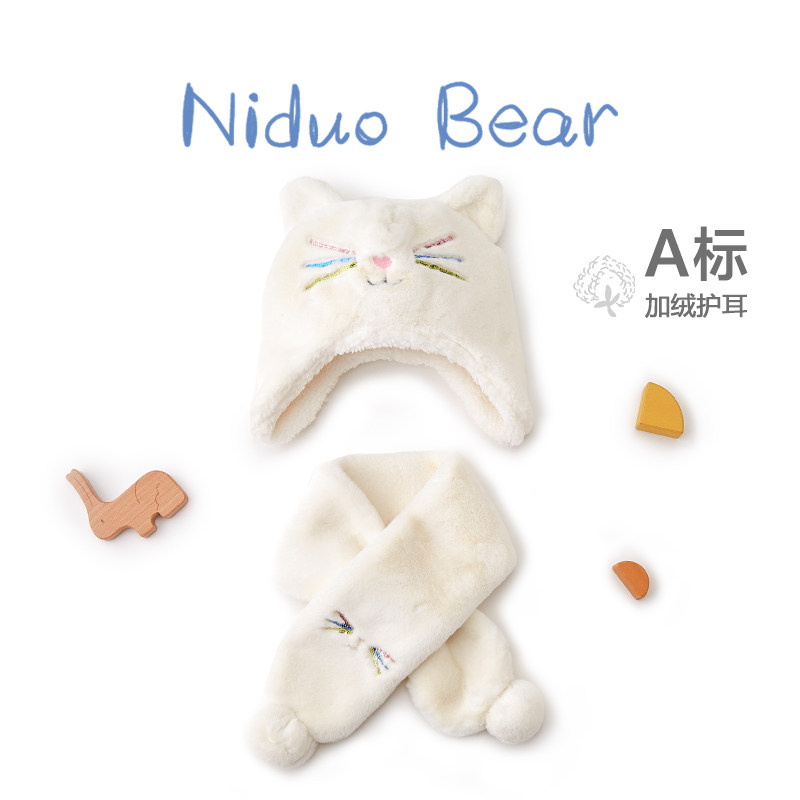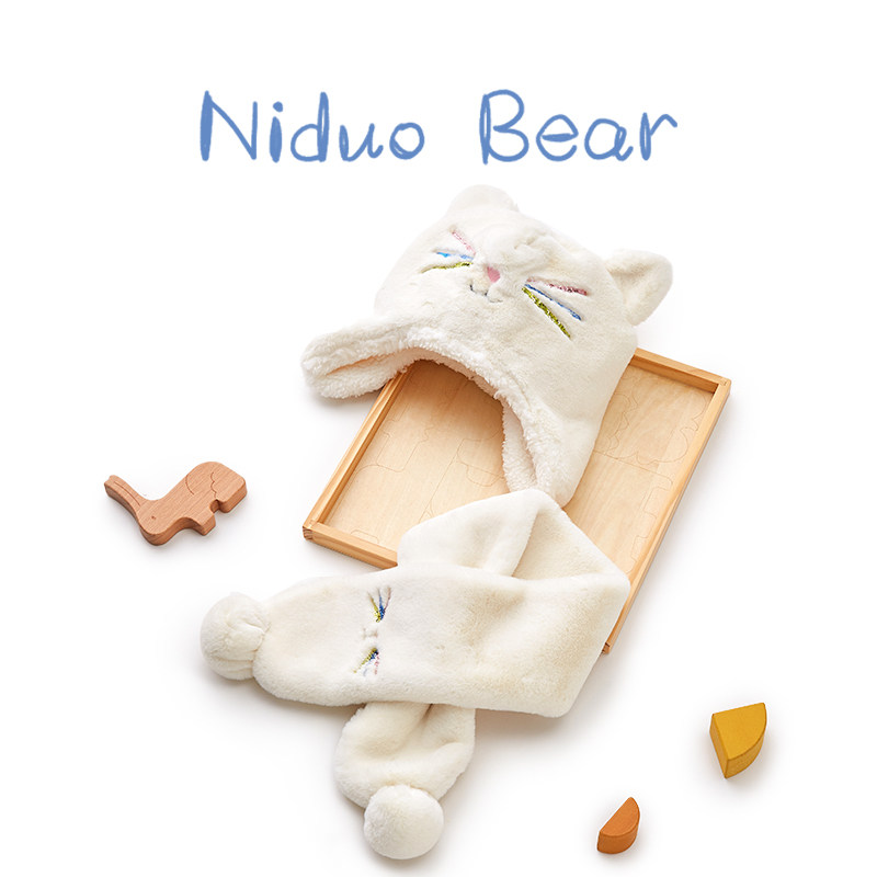 尼多熊 Детская шапка, шарф, осенний утепленный детский удерживающий тепло милый комплект, осенняя
