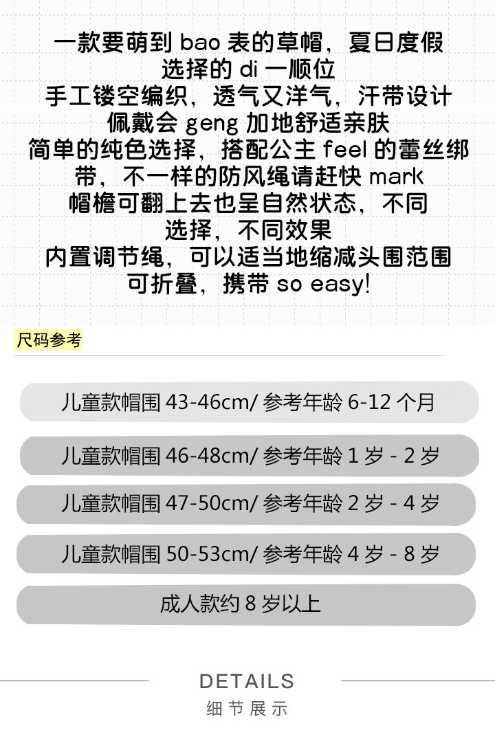 - Окружность шляпы 43-46 см/ориентировочный возраст 6-12 месяцев.