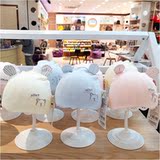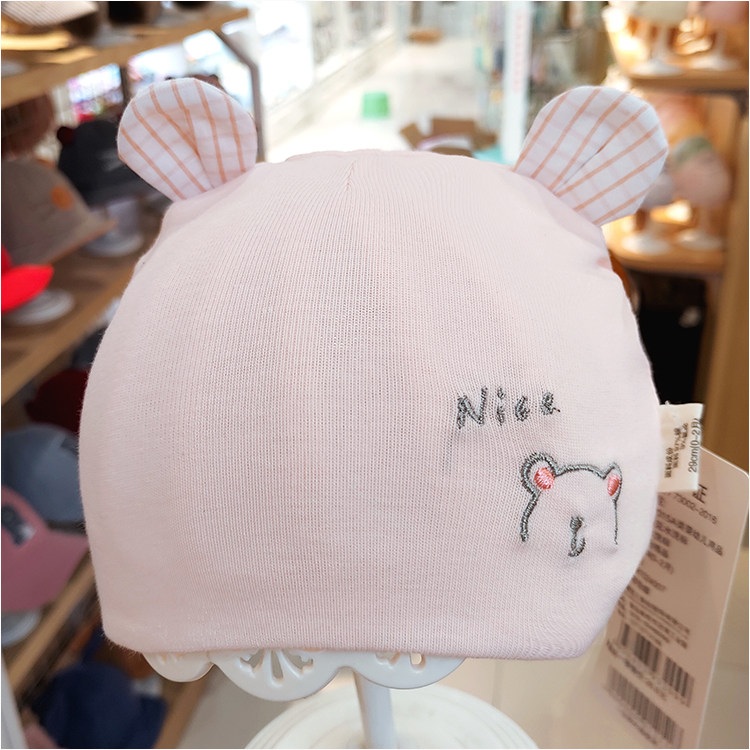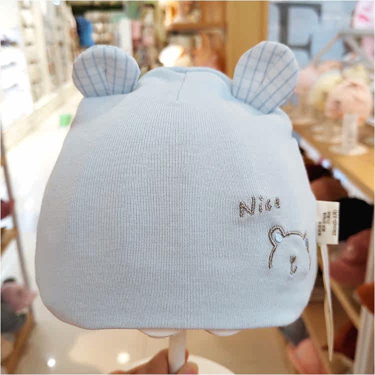 Lingfu Новорожденный плодная шляпа Весна и осень Новые 0-2 месяца вязаной игольной вязаной хлопковой вышивки медведей медведей, медведи