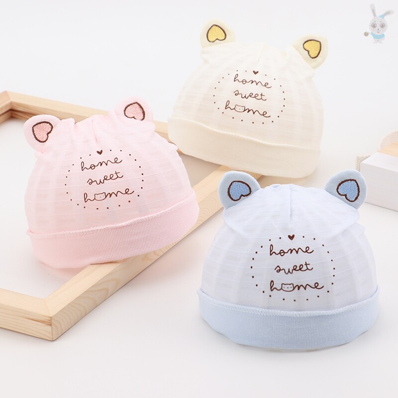 Детская тонкая хлопковая милая дышащая шапка для новорожденных