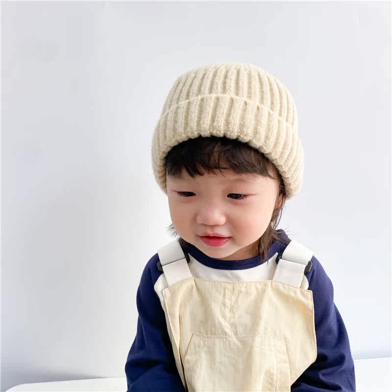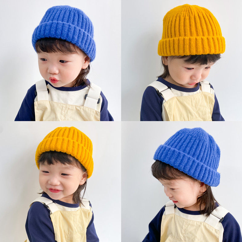 Детская шерстяная осенняя зимняя утепленная вязаная шапка для мальчиков для раннего возраста, в корейском стиле