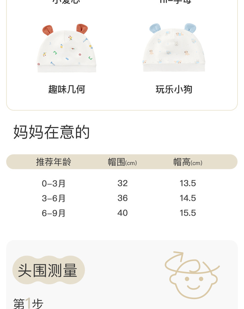 | Возрастная категория: | S (окружность головы: 32-36, предлагая возраст: 0-3 месяца), М (окружность головы: 36-40 Рекомендуемое возраст: 3-6 месяцев), L (Окружность головы: 40-44, предполагая возраст: 6-9 месяцев) |