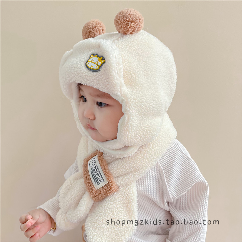 Детская шапка, шарф, флисовый демисезонный удерживающий тепло детский бархатный комплект подходит для мужчин и женщин, увеличенная толщина