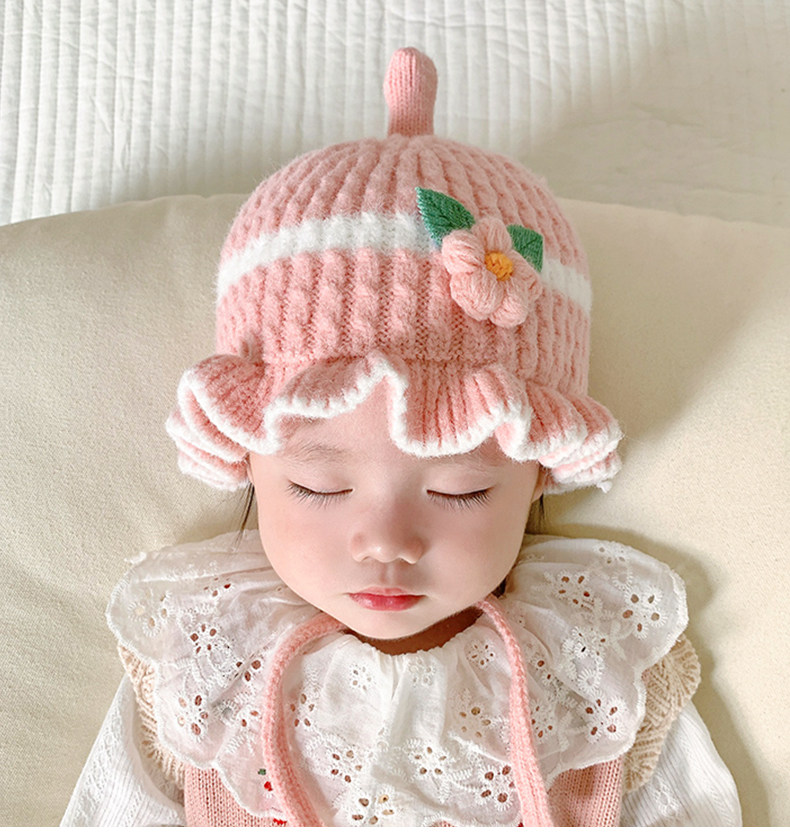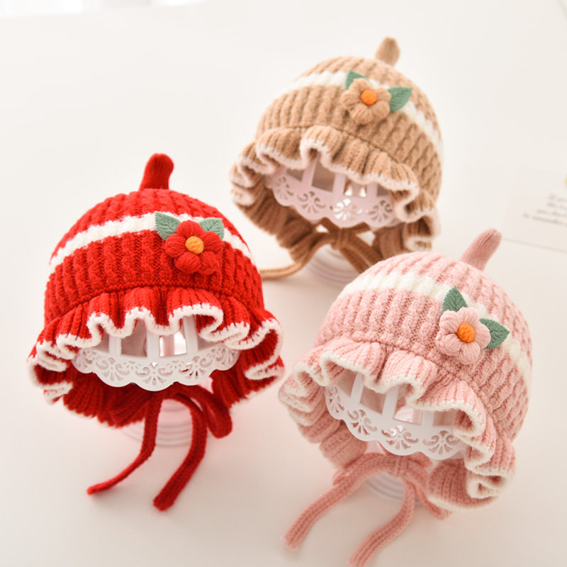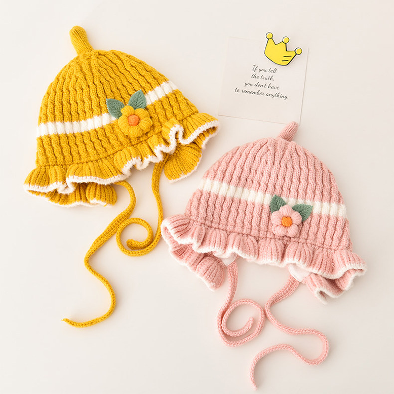 Зимняя шерстяная детская демисезонная милая вязаная шапка для девочек