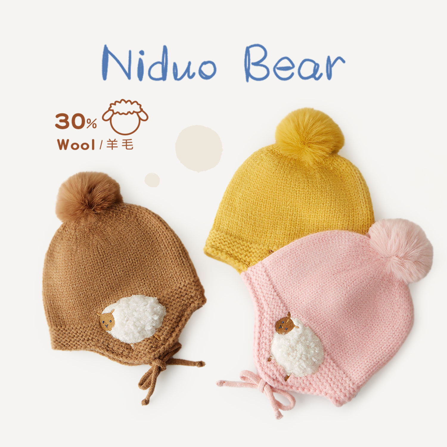尼多熊 Детская шерстяная детская шапочка, демисезонная шапка для раннего возраста подходит для мужчин и женщин
