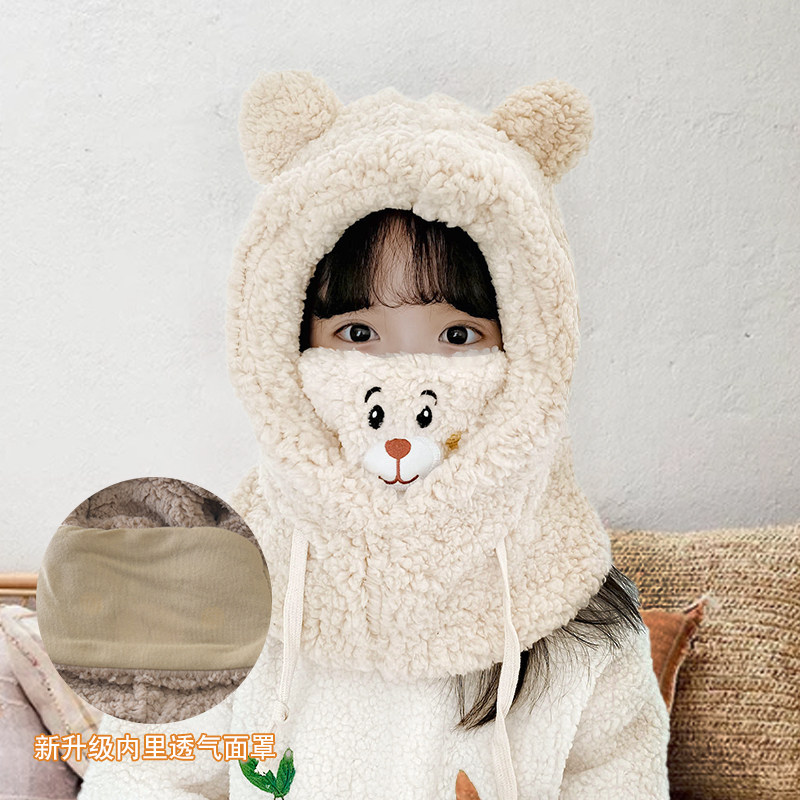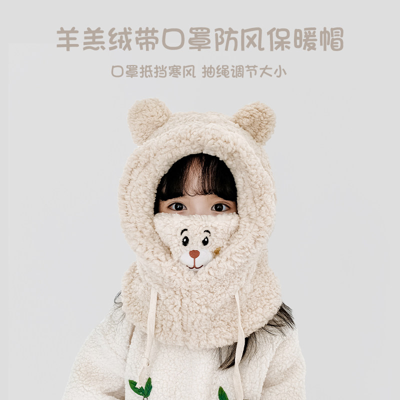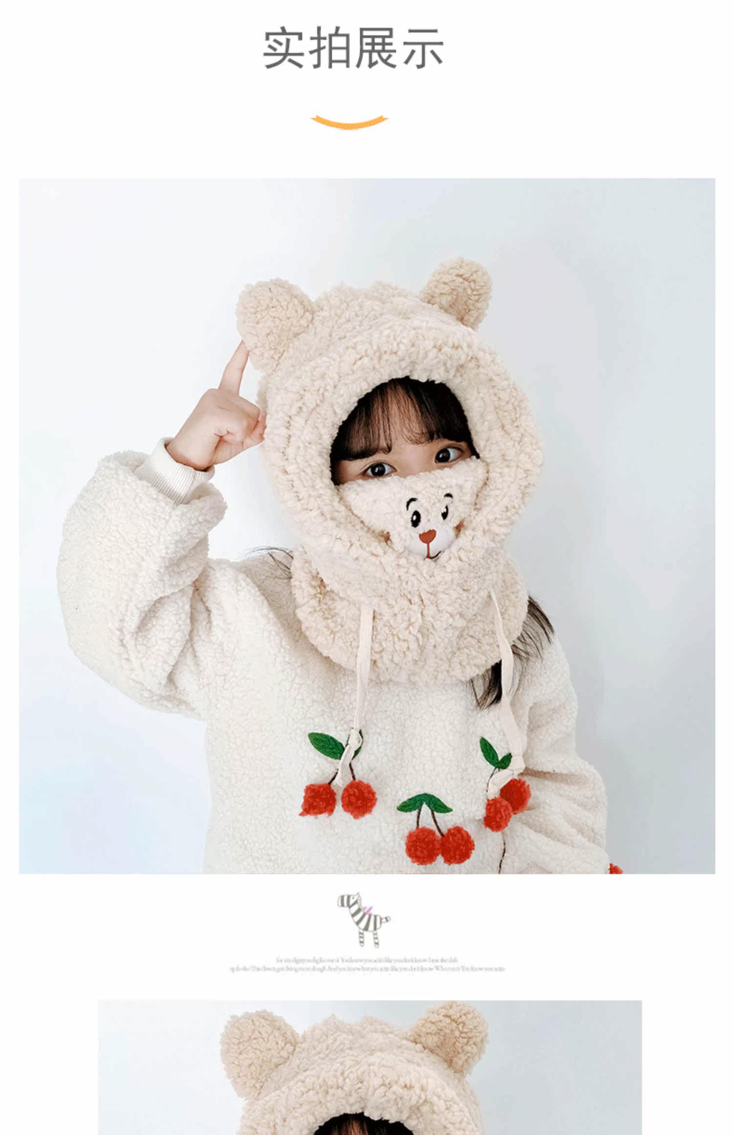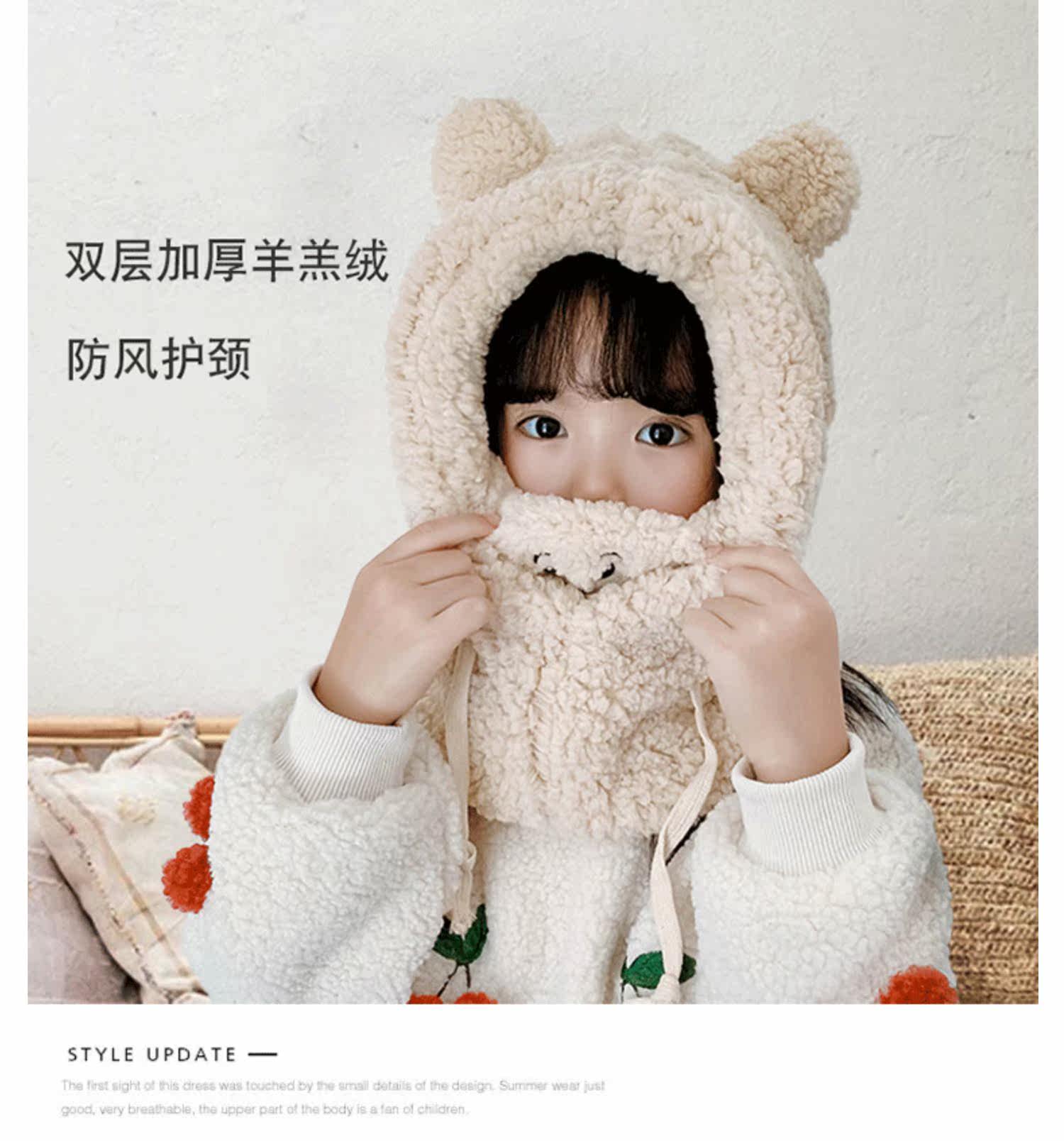 Детская шапка, шарф, зимняя удерживающая тепло бархатная милая медицинская маска, увеличенная толщина