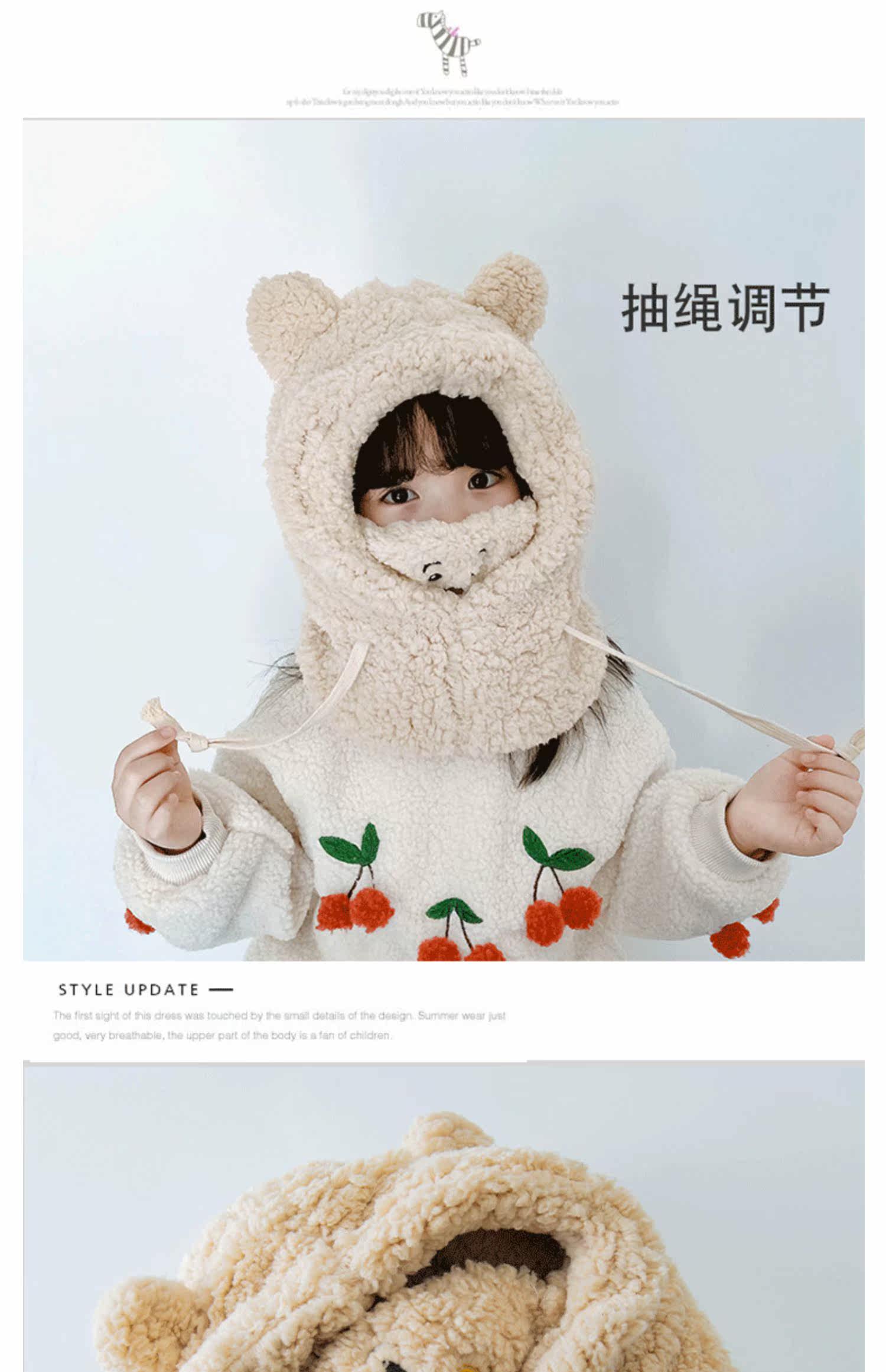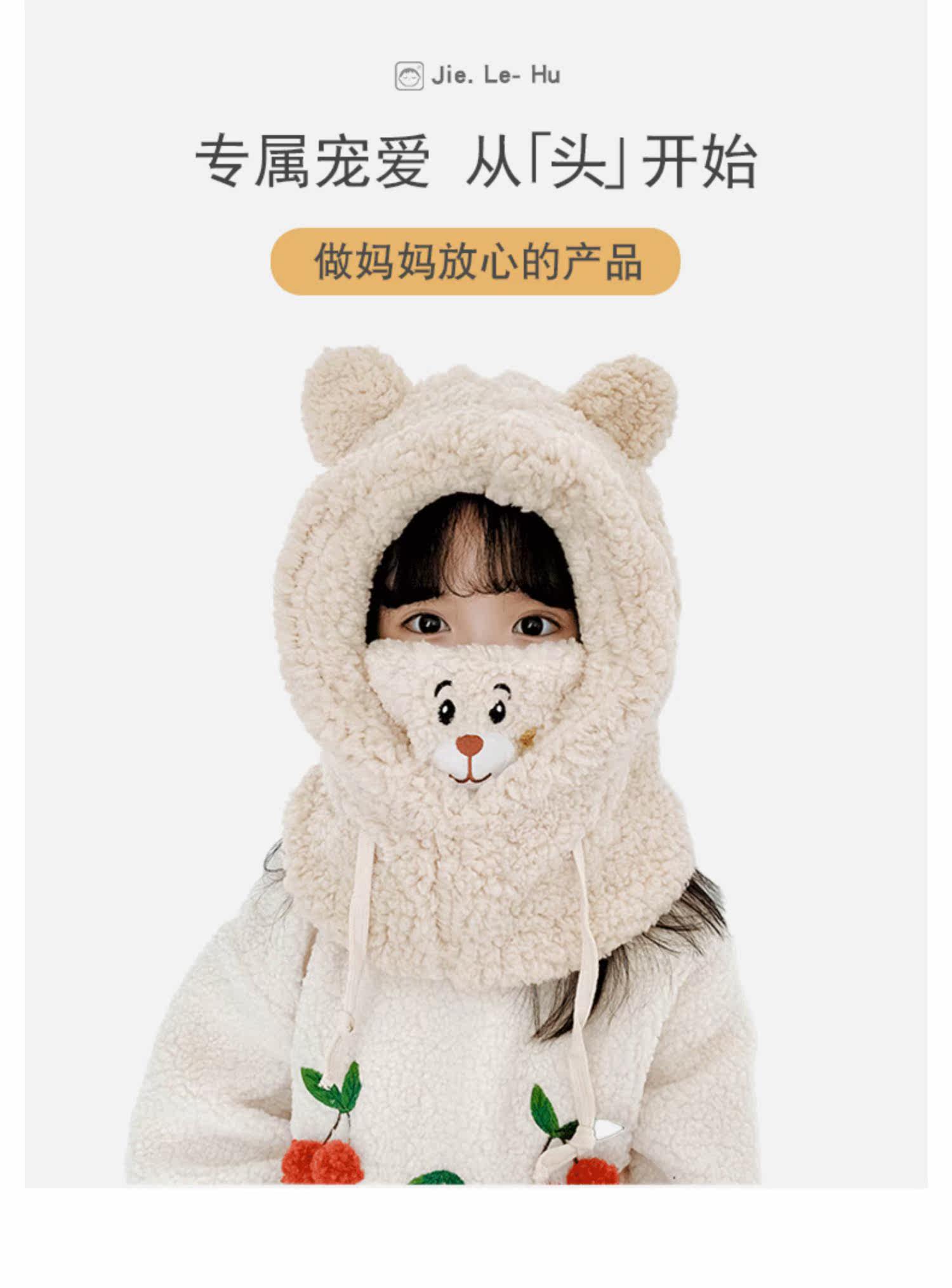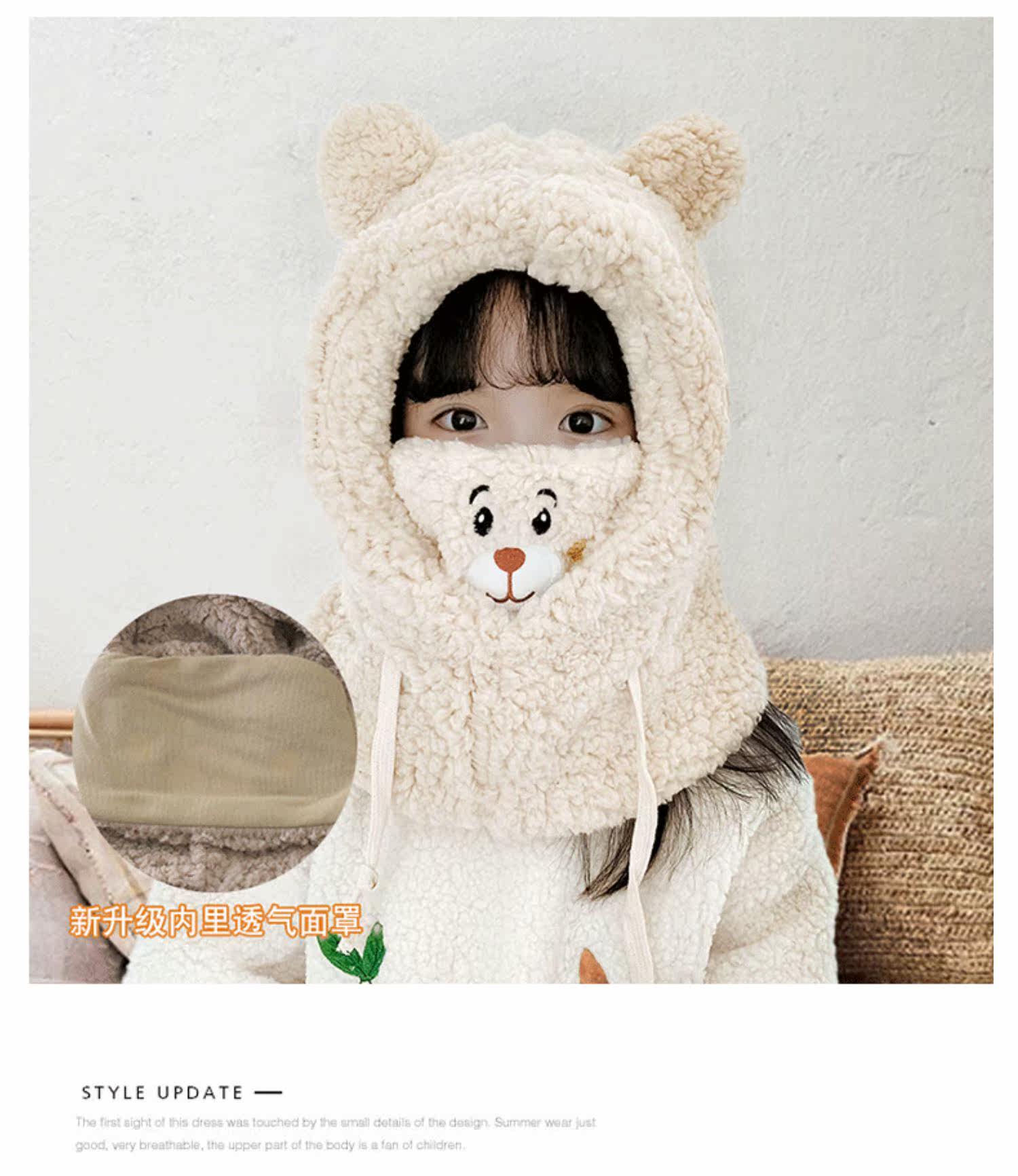 Детская шапка, шарф, зимняя удерживающая тепло бархатная милая медицинская маска, увеличенная толщина