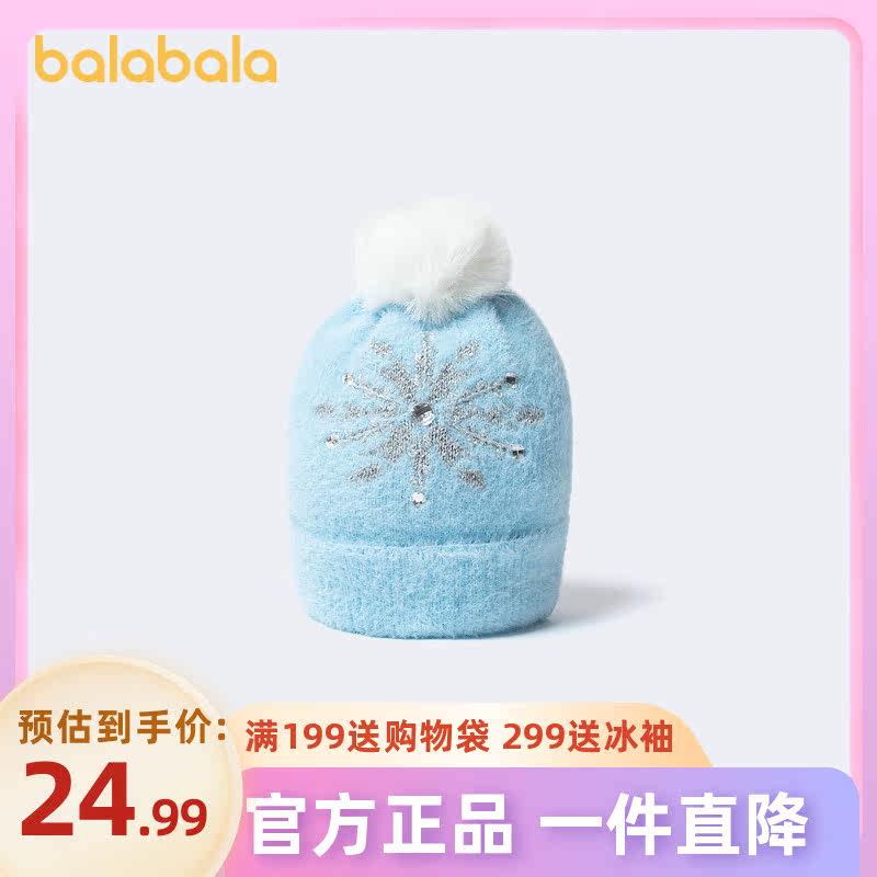巴拉巴拉 Детская удерживающая тепло шапка, удерживающие тепло ветрозащитные трикотажные шерстяные модные изысканные бусы, со снежинками