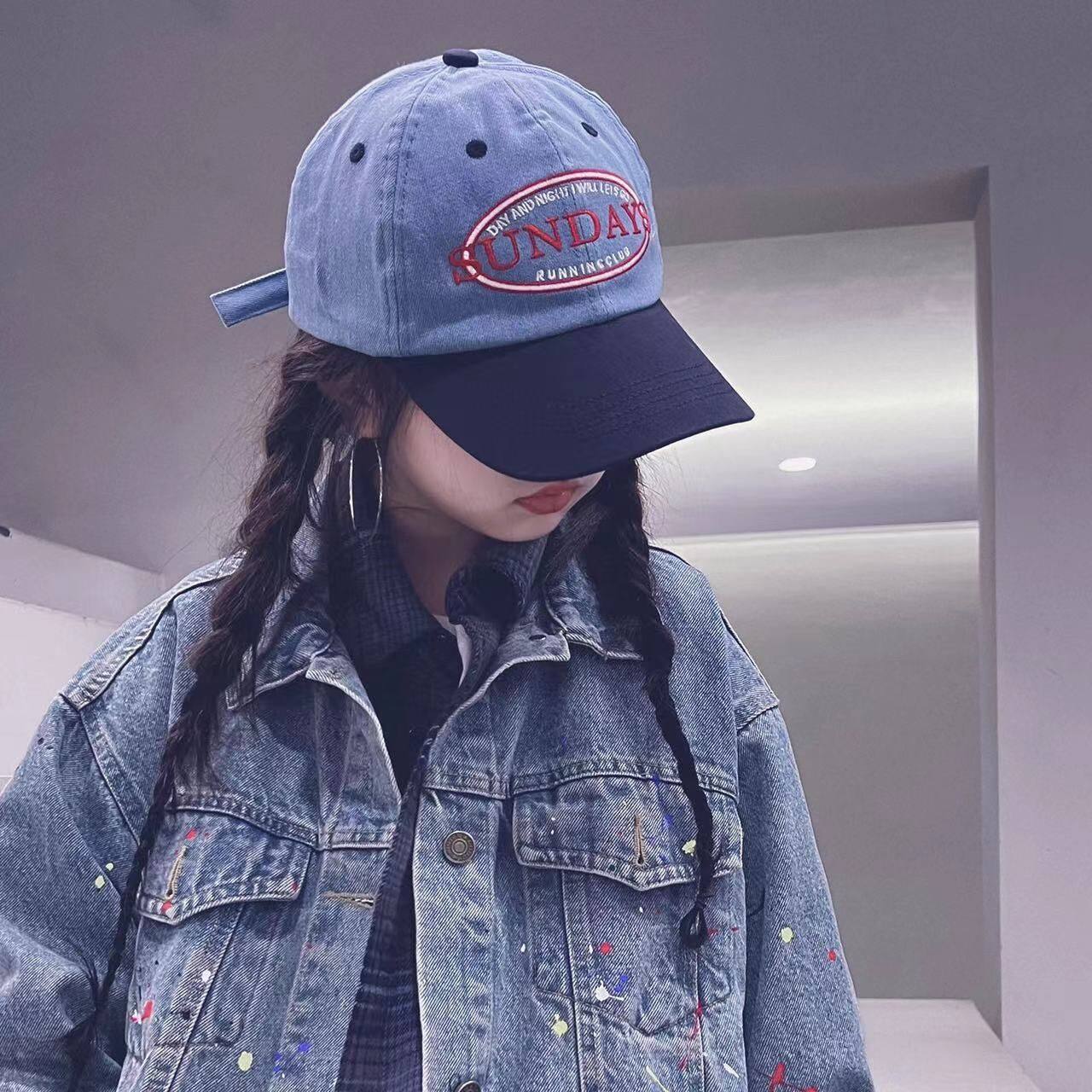 Модная джинсовая бейсболка, кепка, шапка подходит для мужчин и женщин, популярно в интернете, с вышивкой, семейный стиль