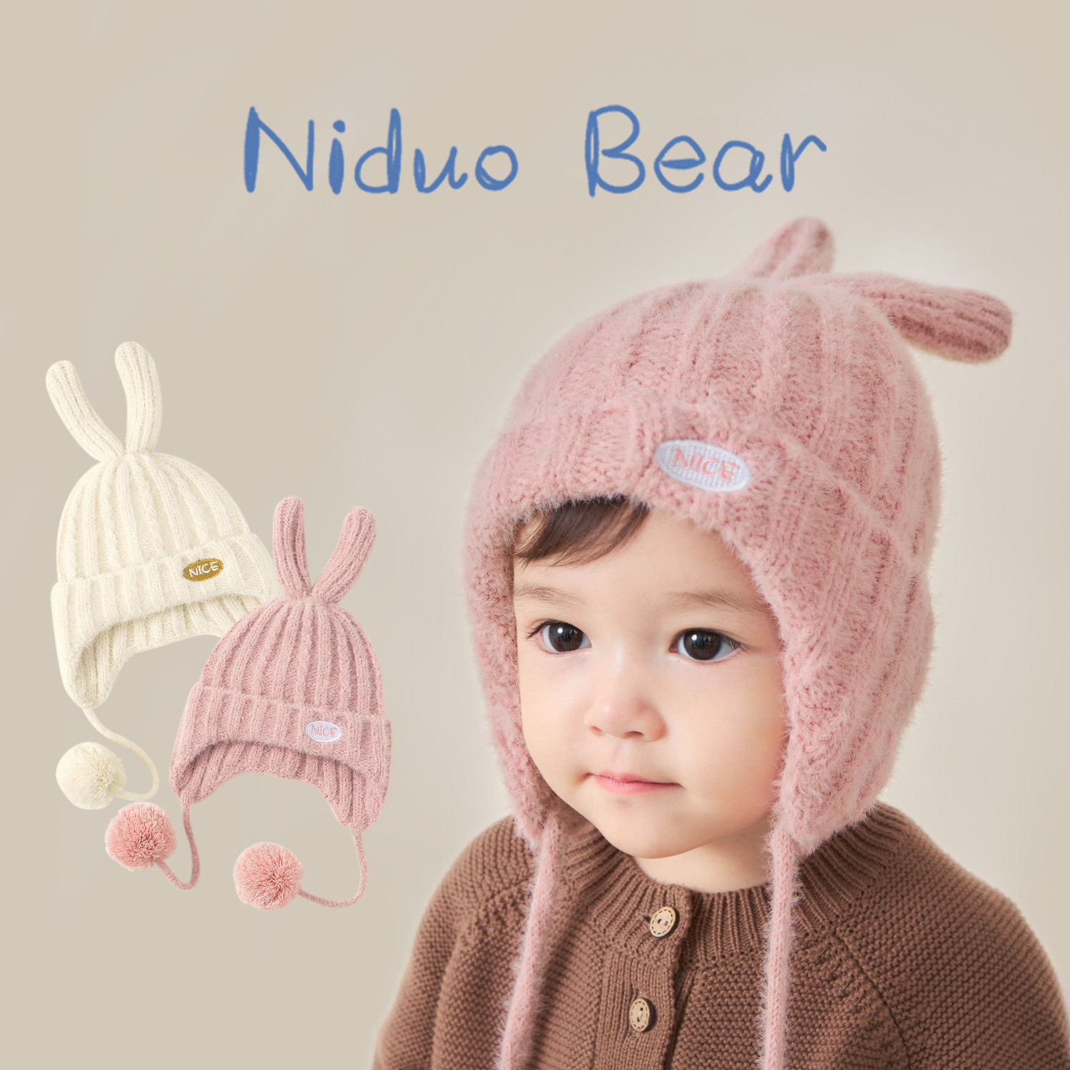 尼多熊 Детская демисезонная шерстяная шапка для девочек