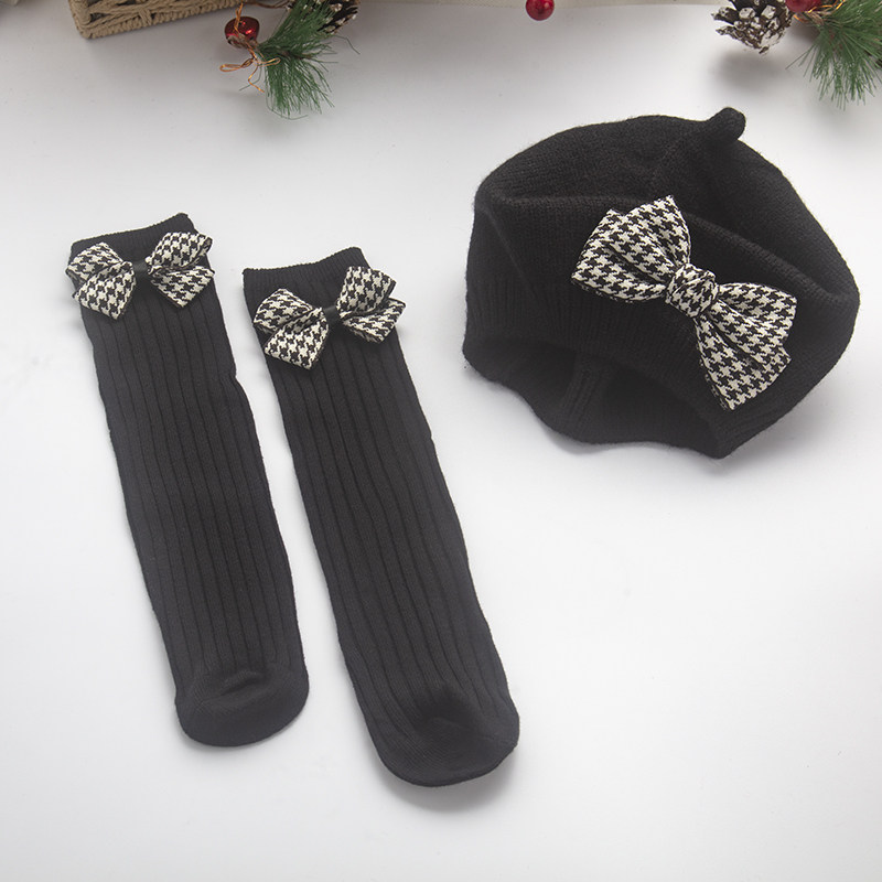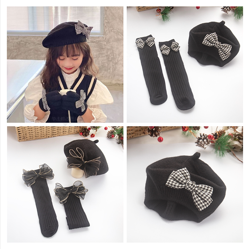 Детская демисезонная шапка для девочек, брендовые носки, милый комплект, стиль