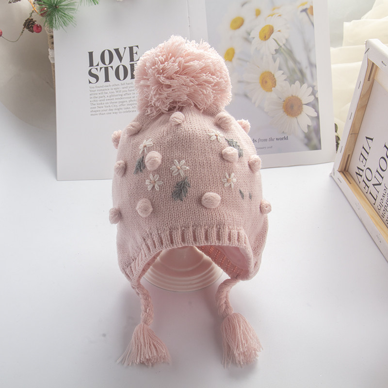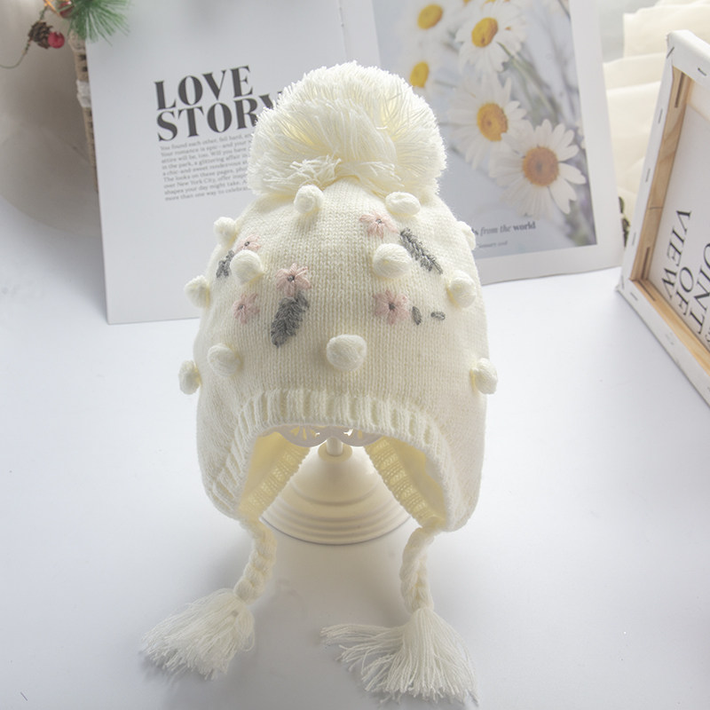 Демисезонная детская зимняя милая шерстяная мультяшная шапка для девочек, с вышивкой, в западном стиле