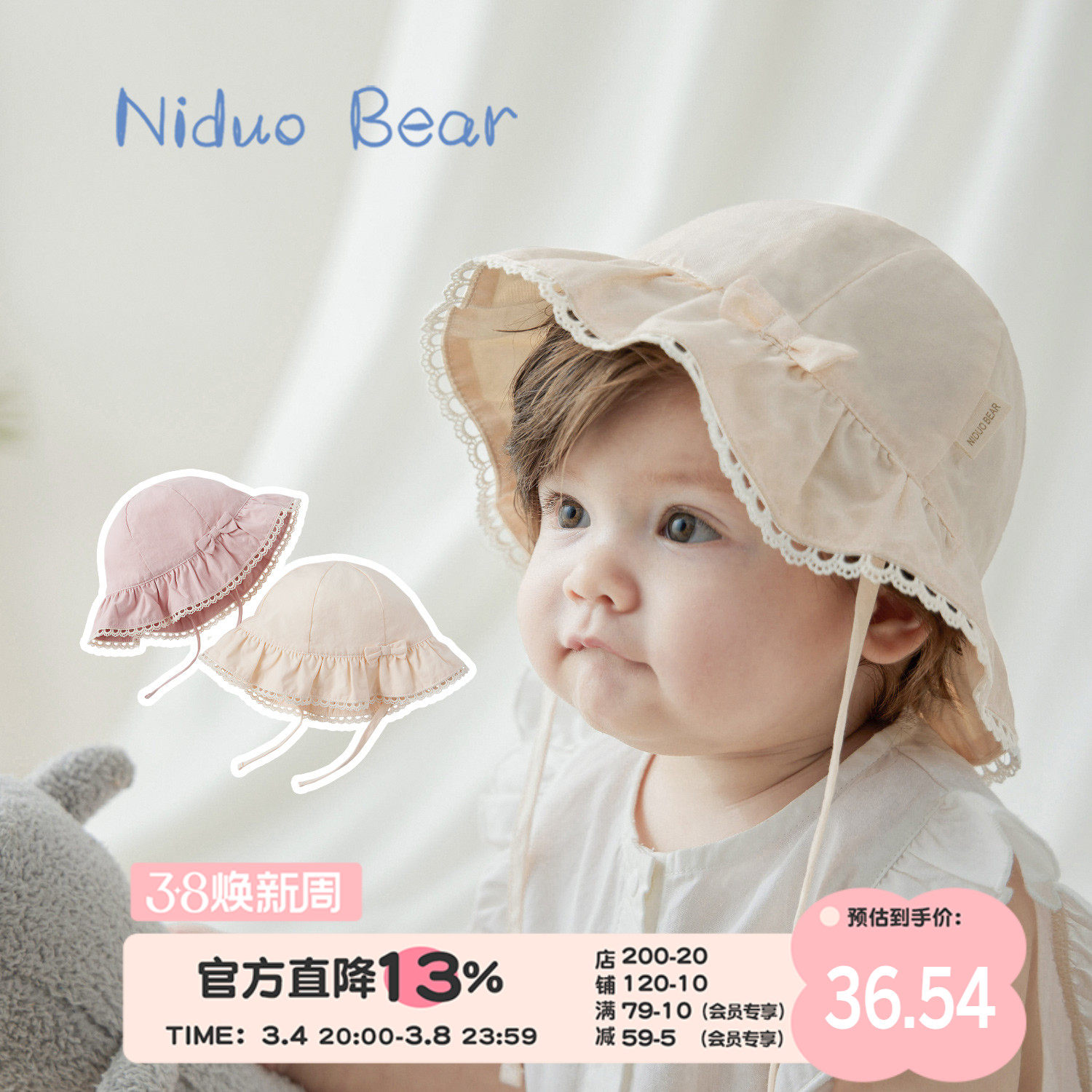 Детская хлопковая летняя шапка для принцессы для новорожденных