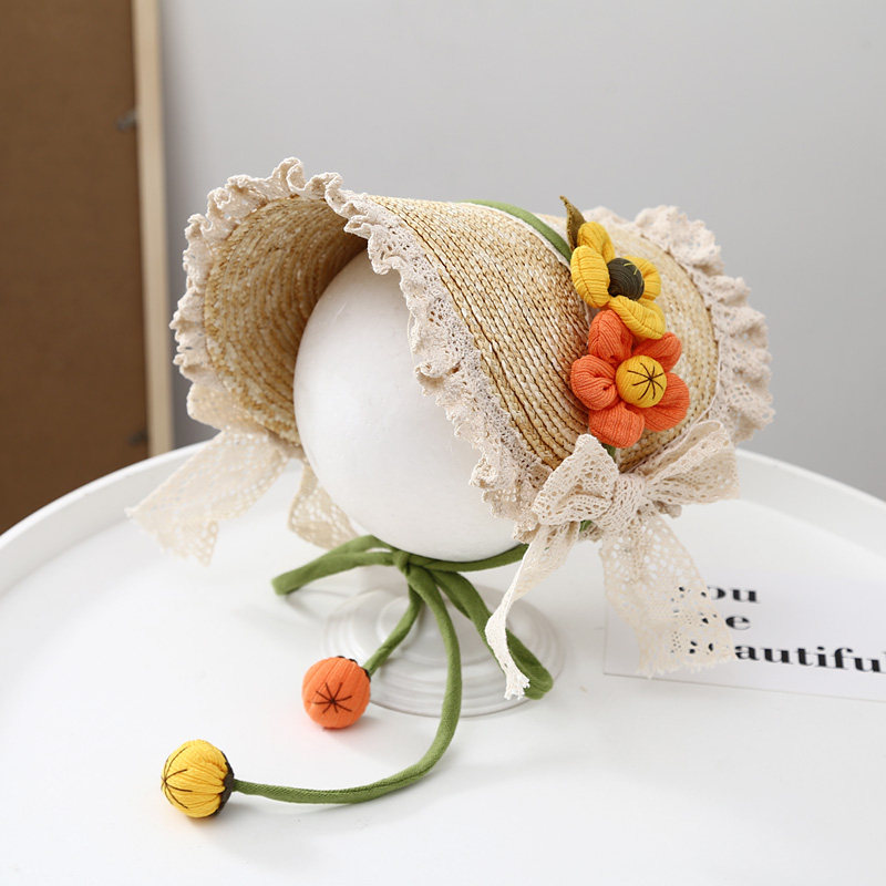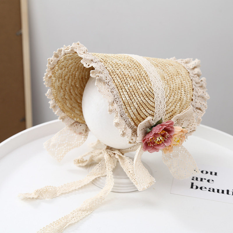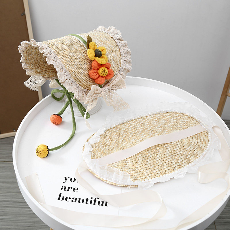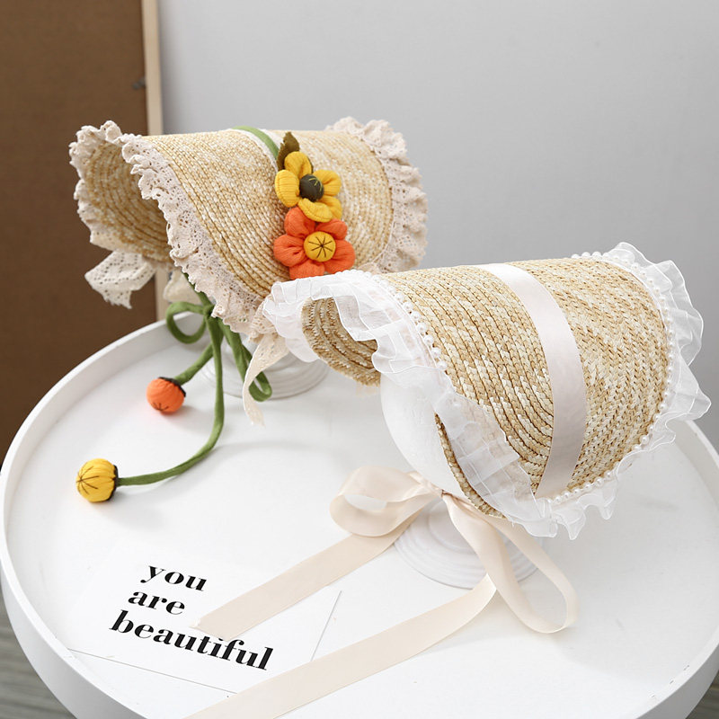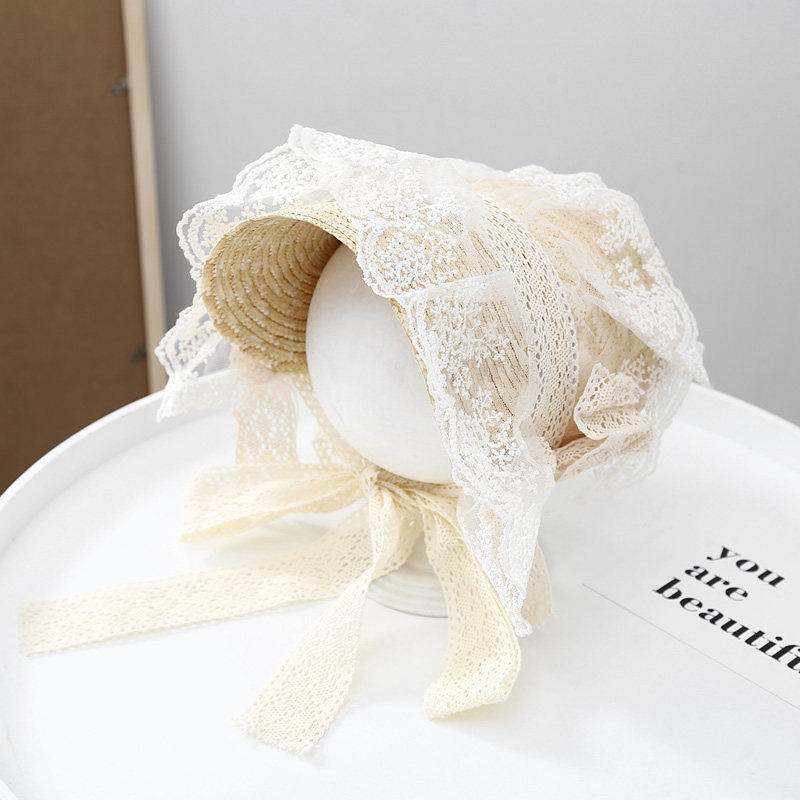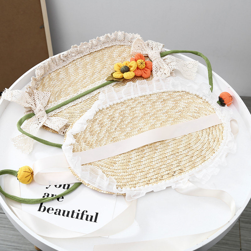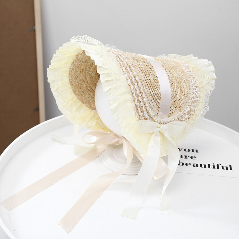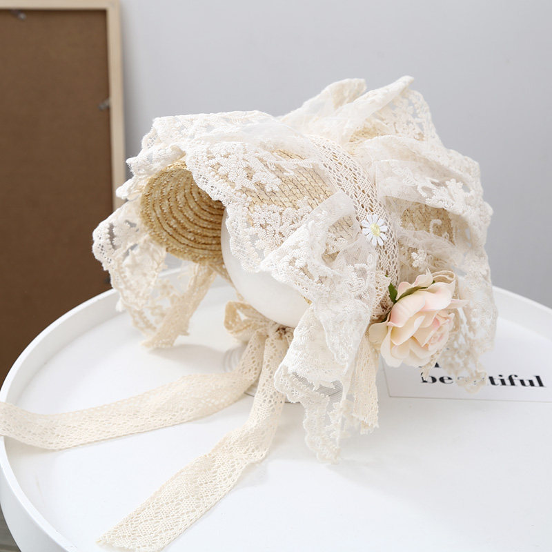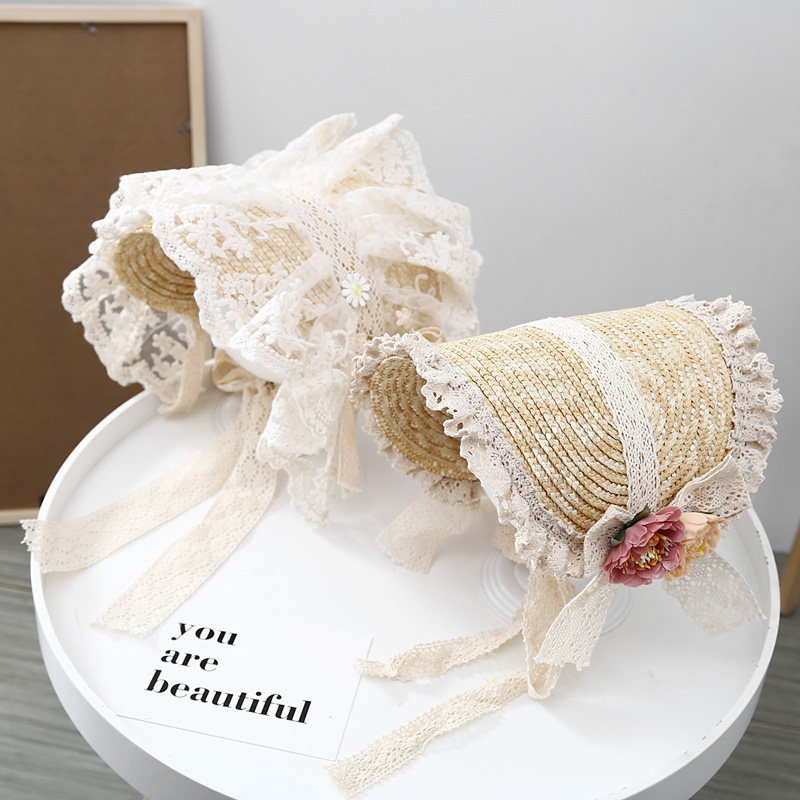 Летняя новая мори в стиле вогнутая форма Дети и женщины фотографируют ретро французское кружево Боуллака Принцесса Соломенная Шляпа