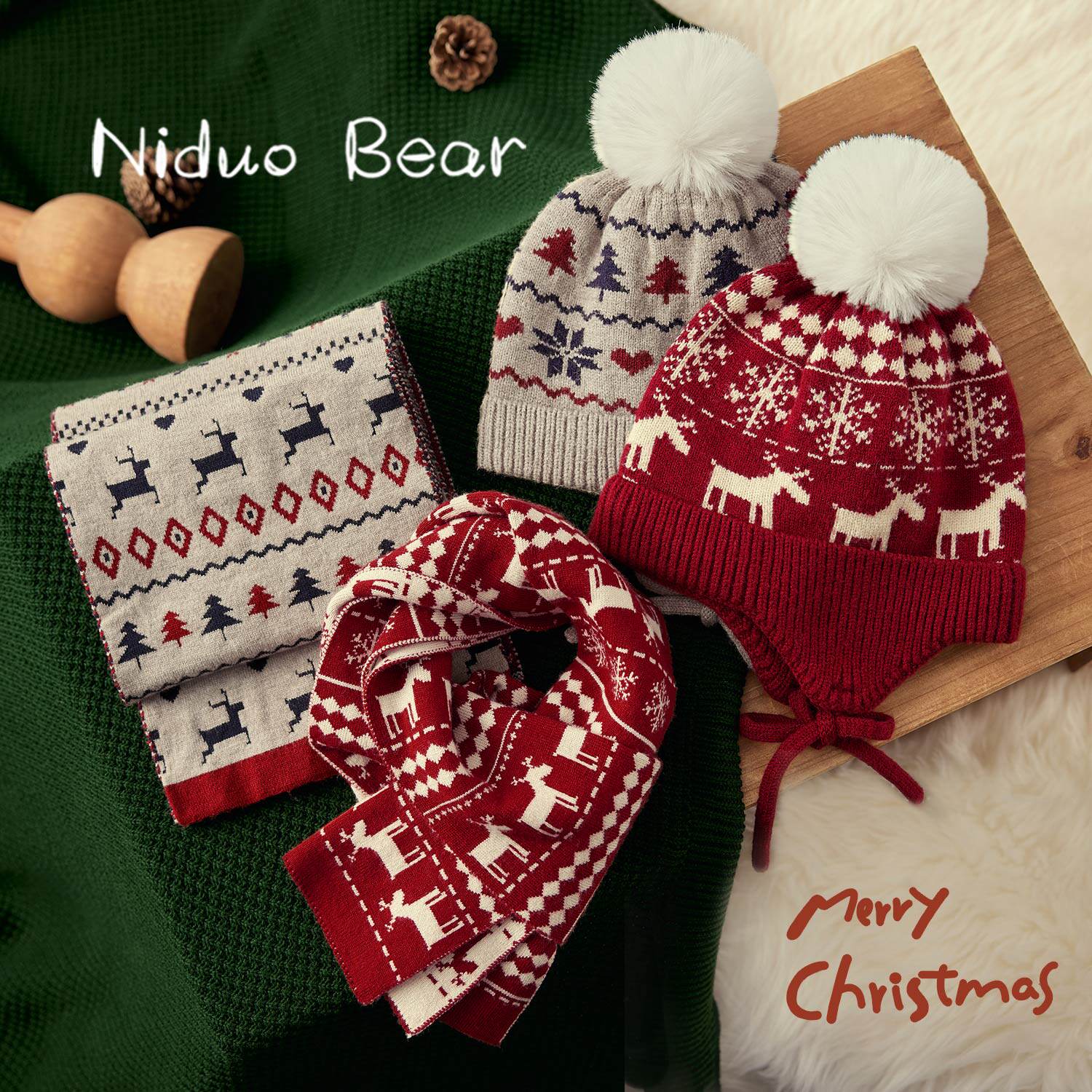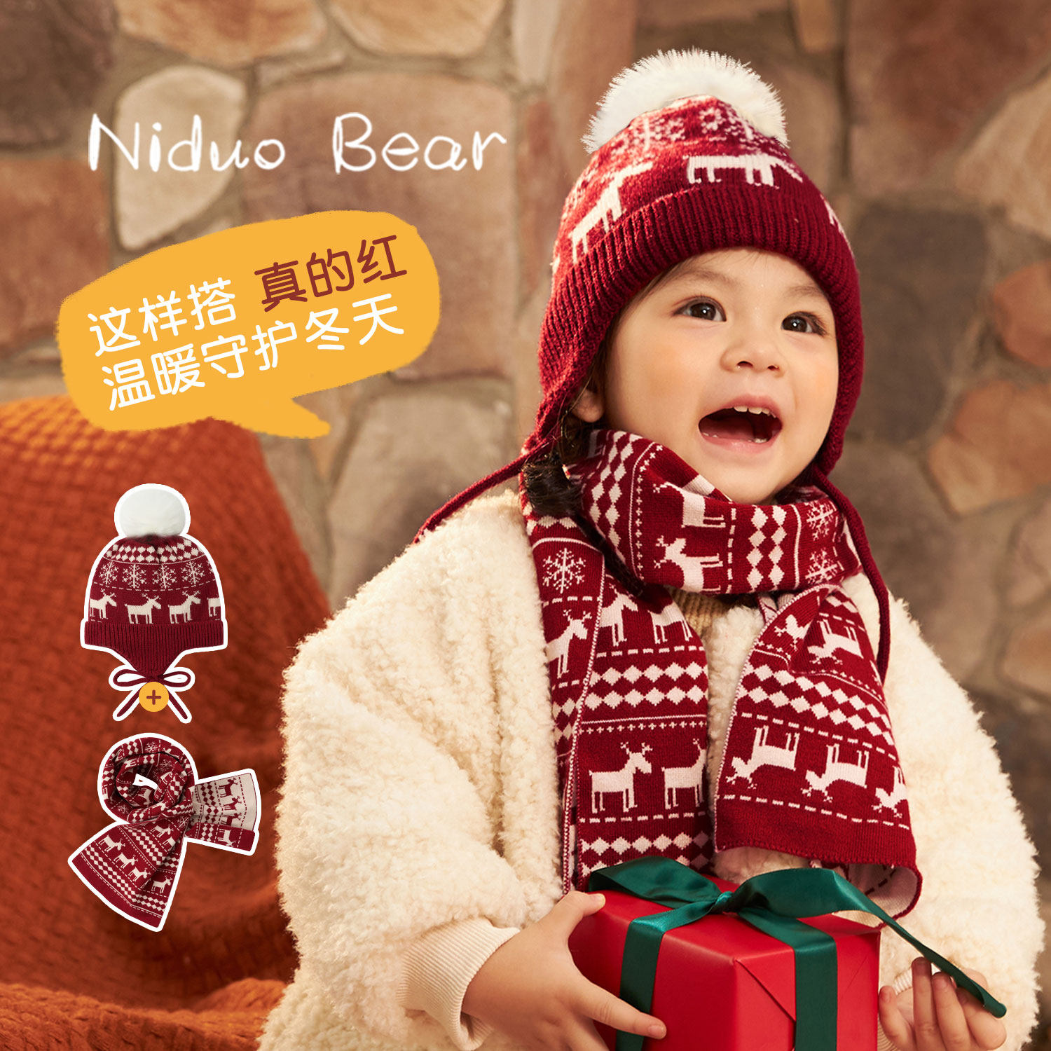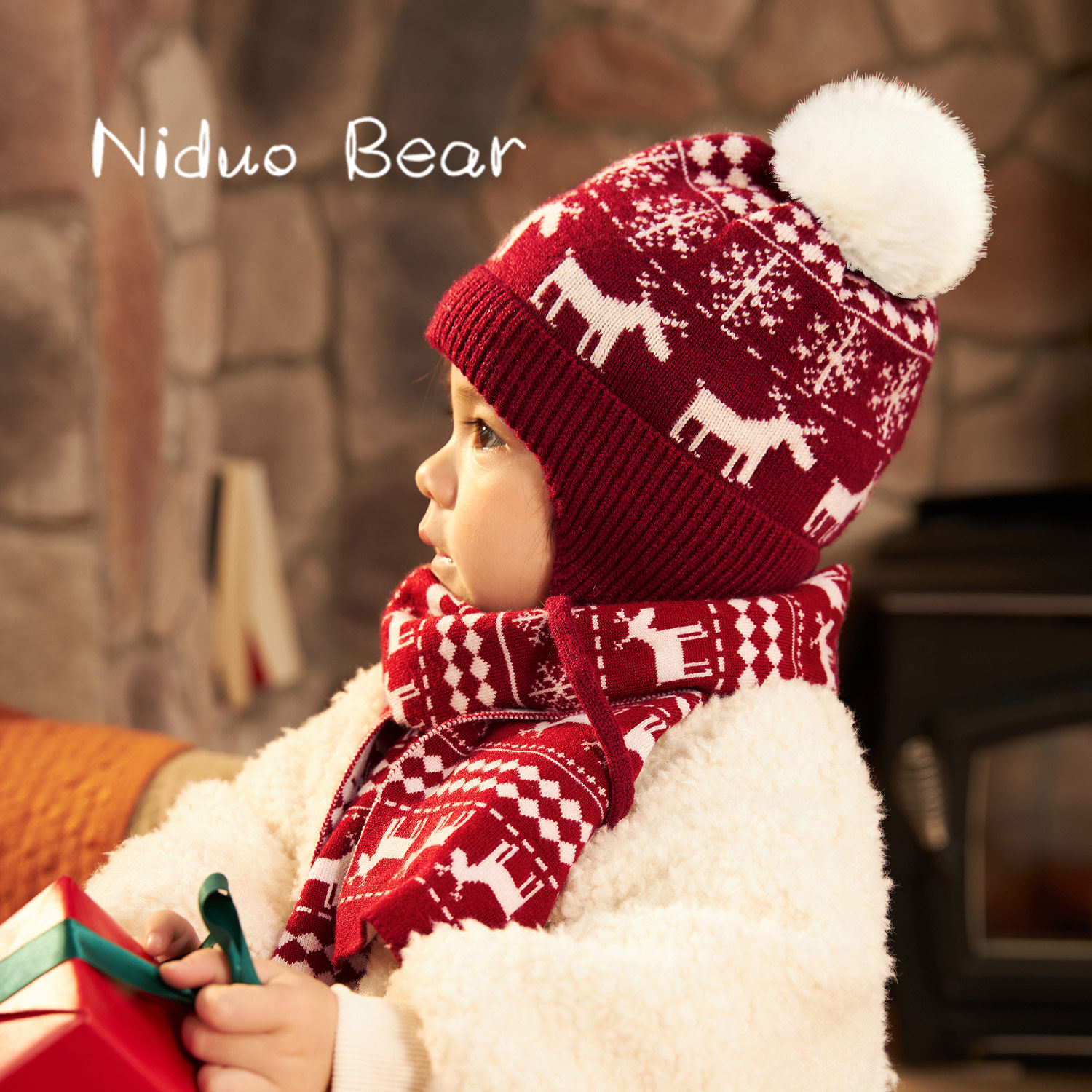 尼多熊 Детская удерживающая тепло шапка, трикотажный шерстяной детский демисезонный шарф, 2023