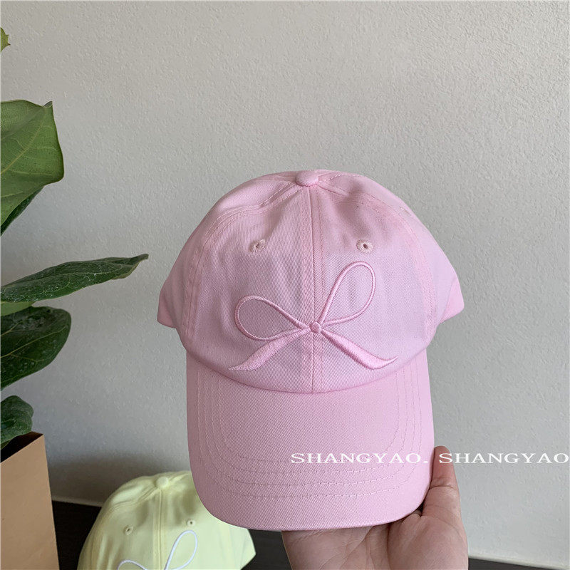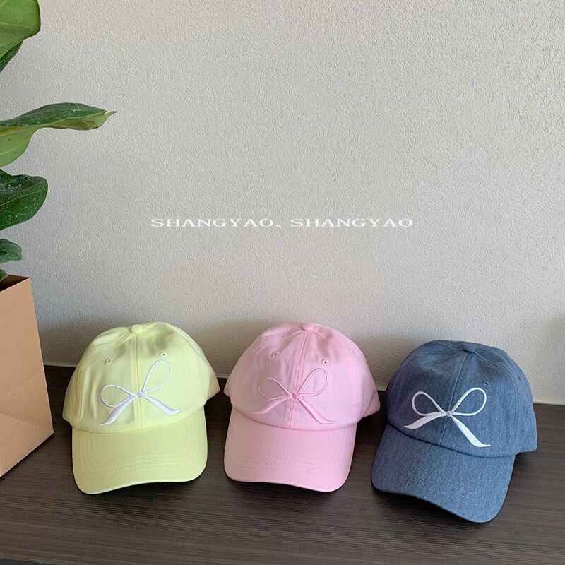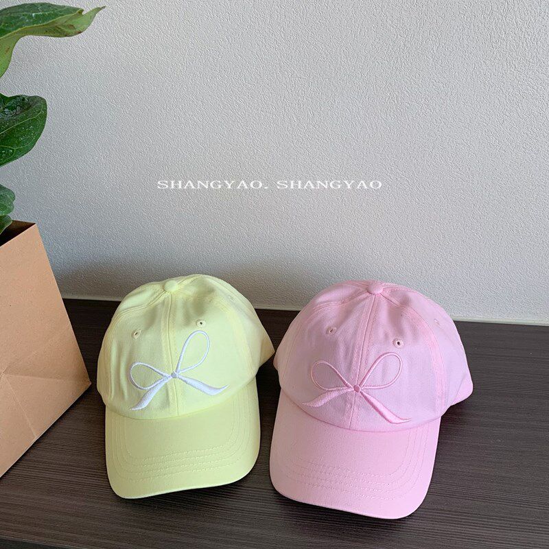 Шапка с бантиком, розовая детская милая кепка, бейсболка, семейный стиль, с вышивкой, принт