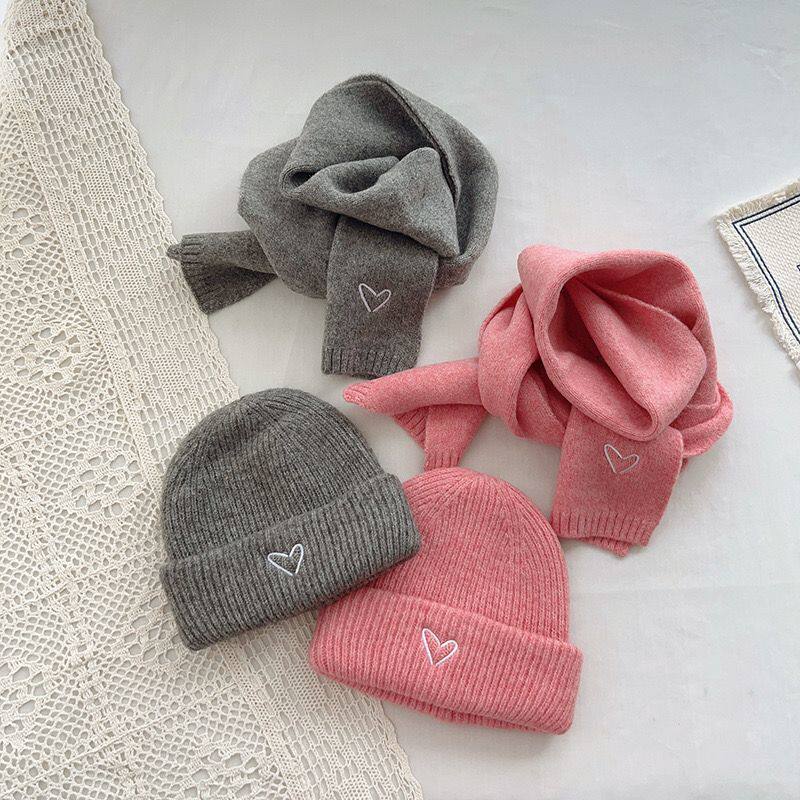 Детская шапка, шарф, демисезонный универсальный детский удерживающий тепло комплект подходит для мужчин и женщин, в корейском стиле, с вышивкой, 2 шт