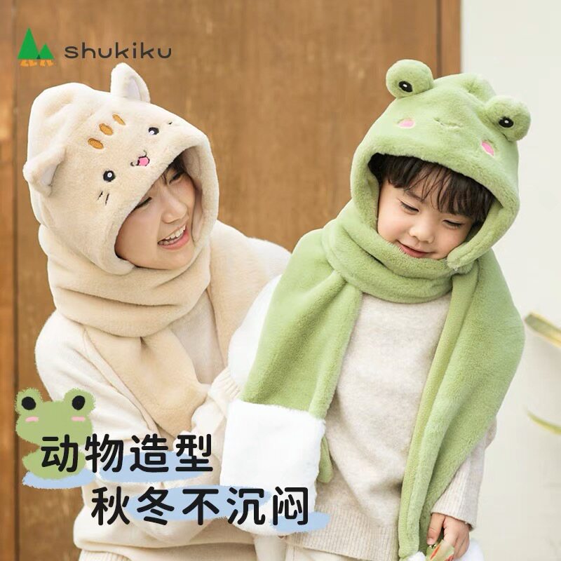 Японская детская зимняя шапка, шарф с капюшоном, утепленные перчатки