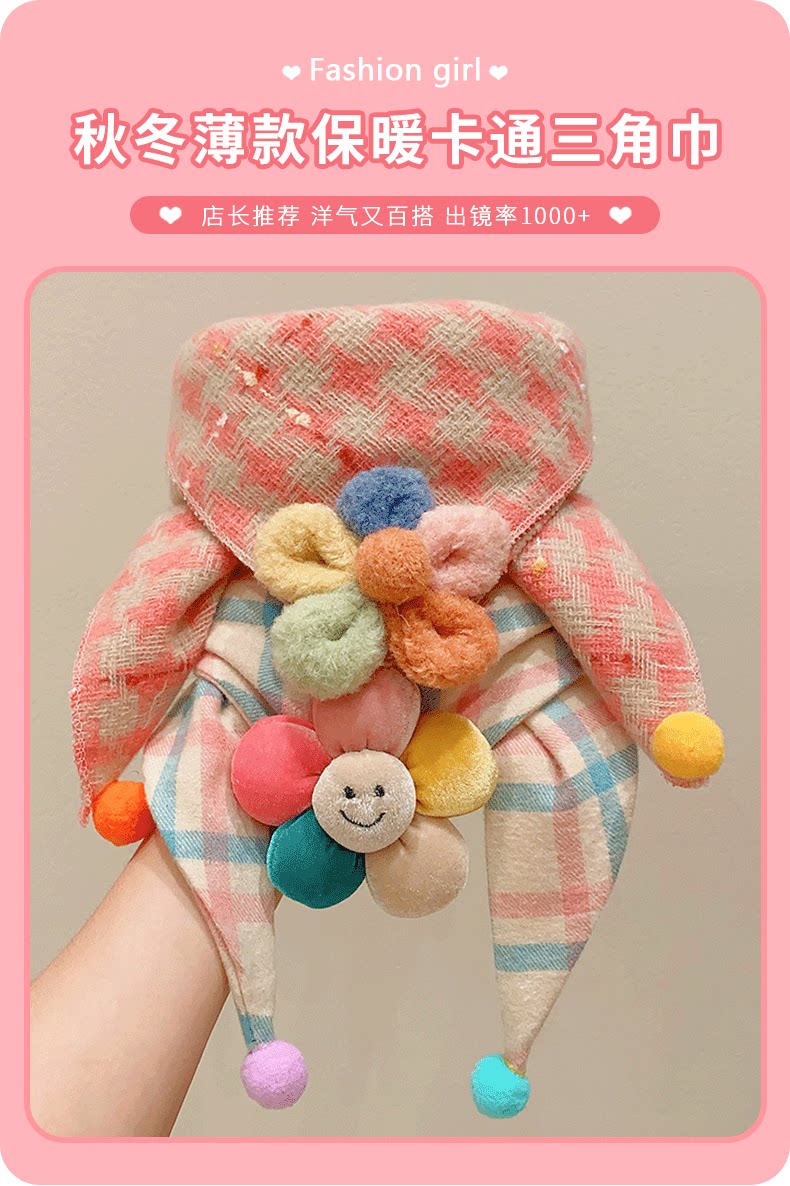 Детский демисезонный милый шарф, удерживающий тепло ветрозащитный шарф-платок, в цветочек, в корейском стиле