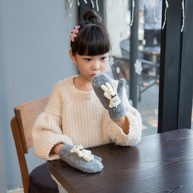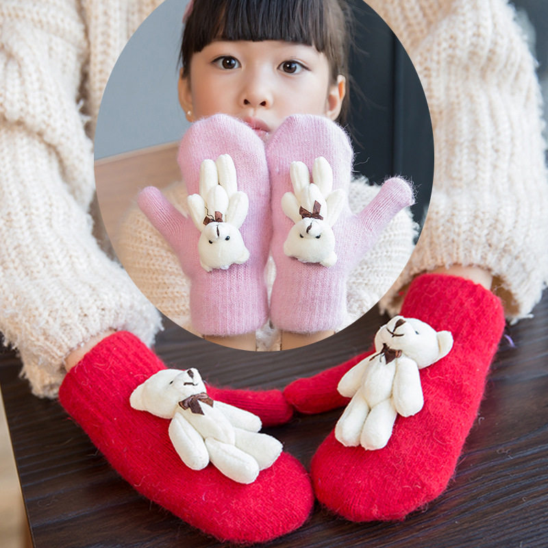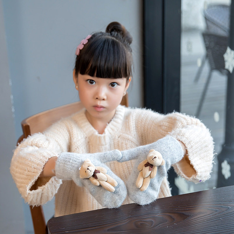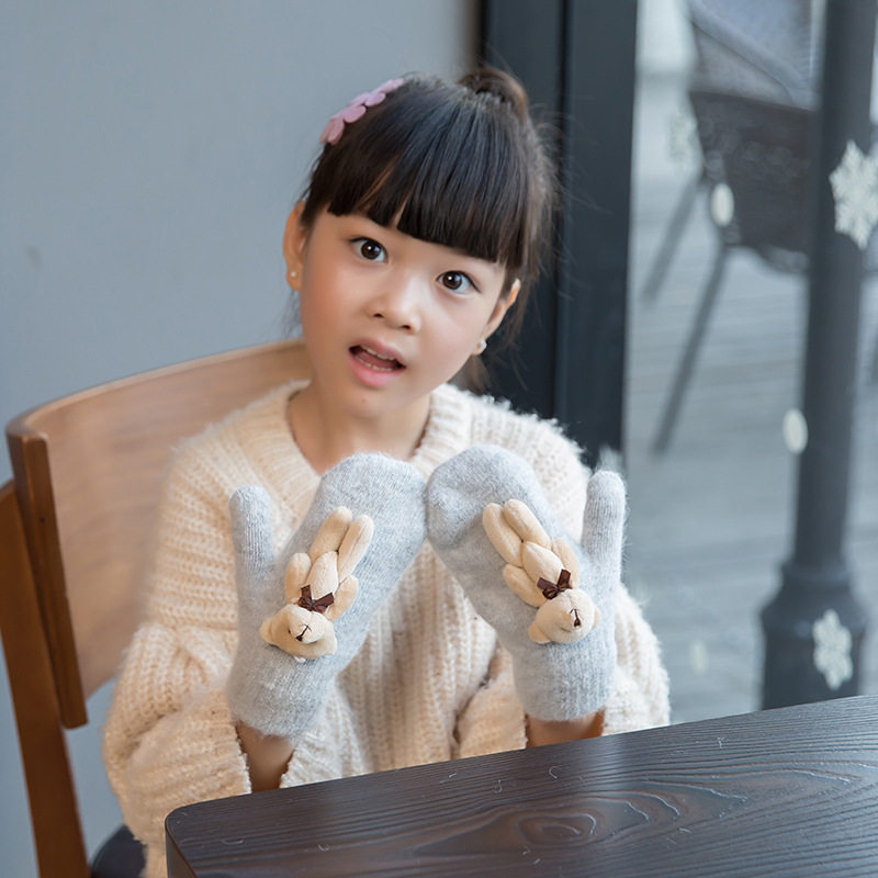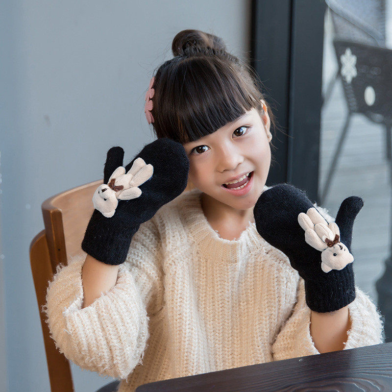 Детские зимние удерживающие тепло утепленные милые демисезонные перчатки для мальчиков, с медвежатами