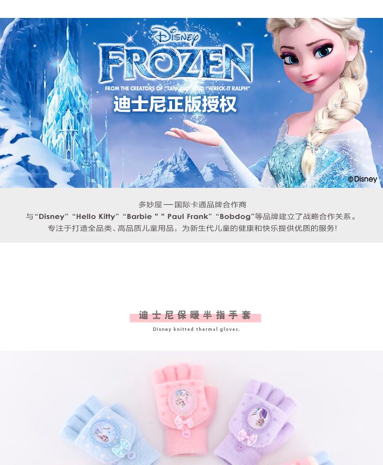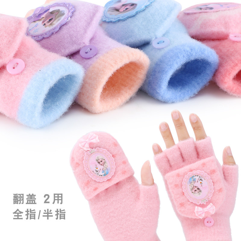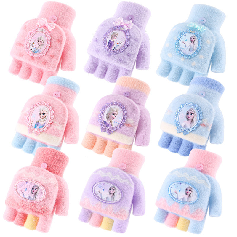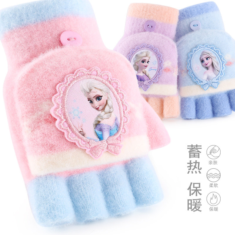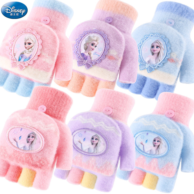 Дисней, детские удерживающие тепло трикотажные перчатки, детское кольцо для принцессы для раннего возраста, без пальцев, «Холодное сердце»