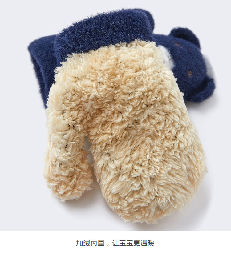 巴拉巴拉 Детские зимние трикотажные флисовые милые перчатки для мальчиков, в западном стиле, с медвежатами