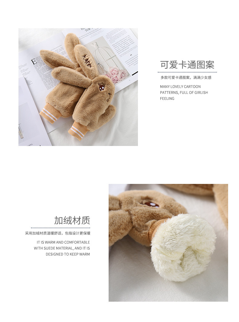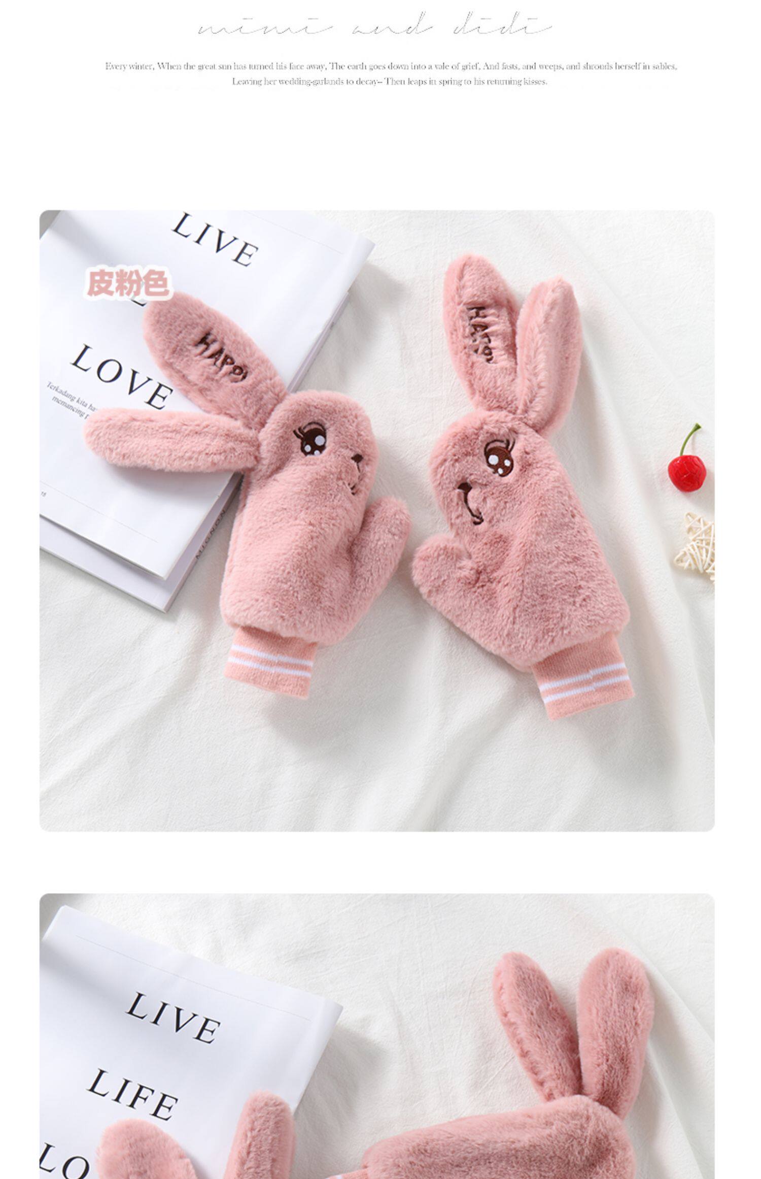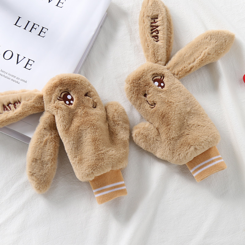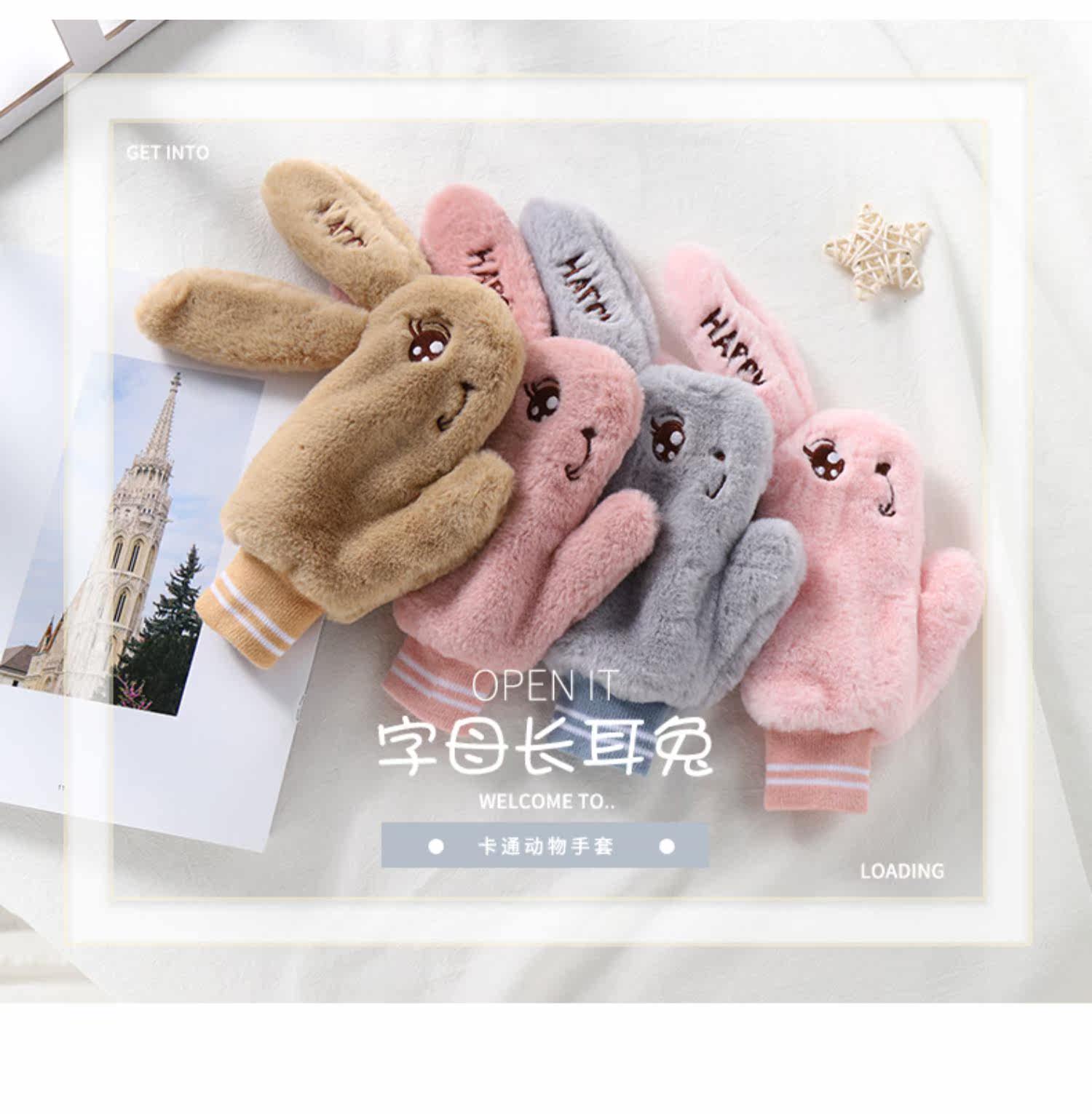 Детский милый плюшевый кролик, зимние детские утепленные перчатки, 3-8 лет